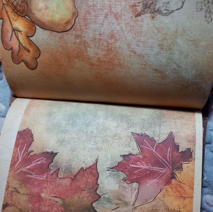 I love Autumn and the colours so hand painted leaves ands acorns to add to a journal which is the one you see in the photoes