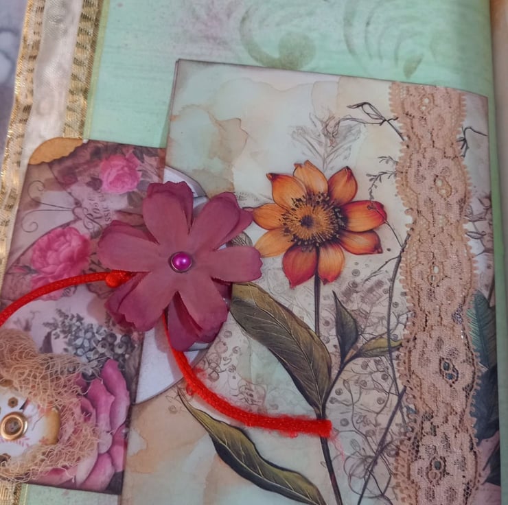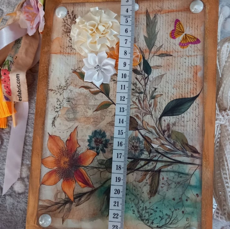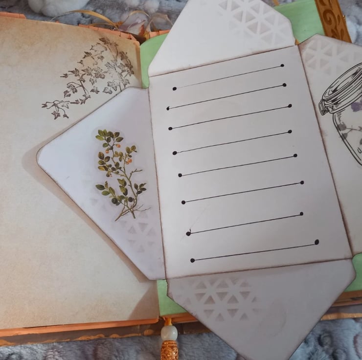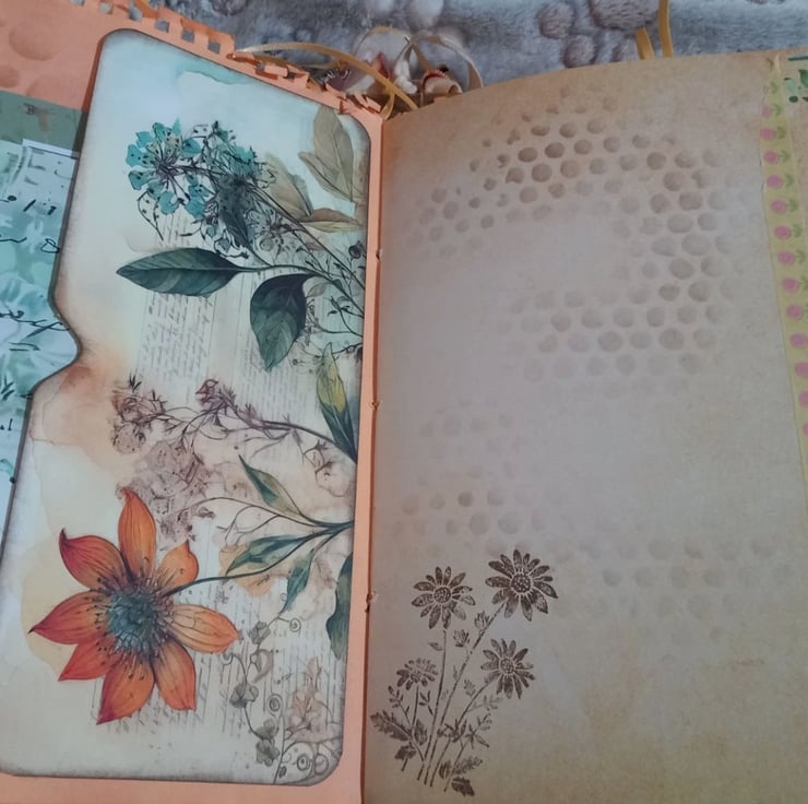 his journal is hand made using many types of mixed media in orange and green theme colors inspired theme.FEATURES INCLUDE
