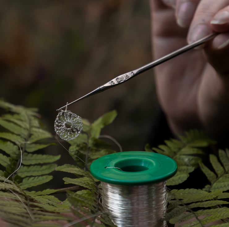 In 2019 I submitted my first crochet silver lace necklace to a Fine Art Show. When it was accepted, the gift shop got in touch and asked for more related pieces to sell alongside my display piece. It was at this time I was sat up many nights in a row thinking of all of the elegant different floral designs I could create. I ran out of inspiration and decided to take a walk through the woods to clear my head. Seeing the diversity of the forest floor, and finding beauty in it all, not just the flowers I had intentionally planted, I decided to create the Wildflower collection.