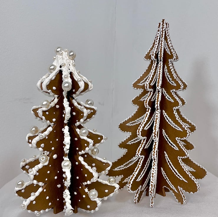 Set of 2 handpainted wooden trees