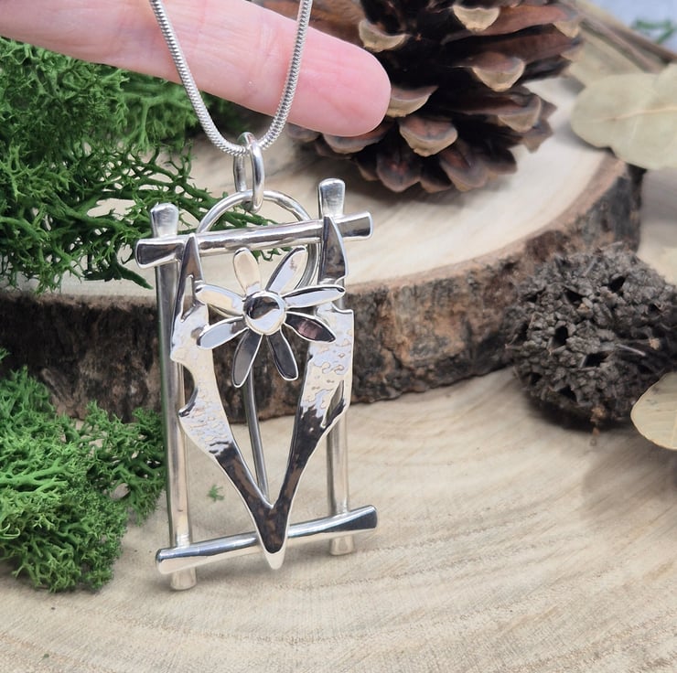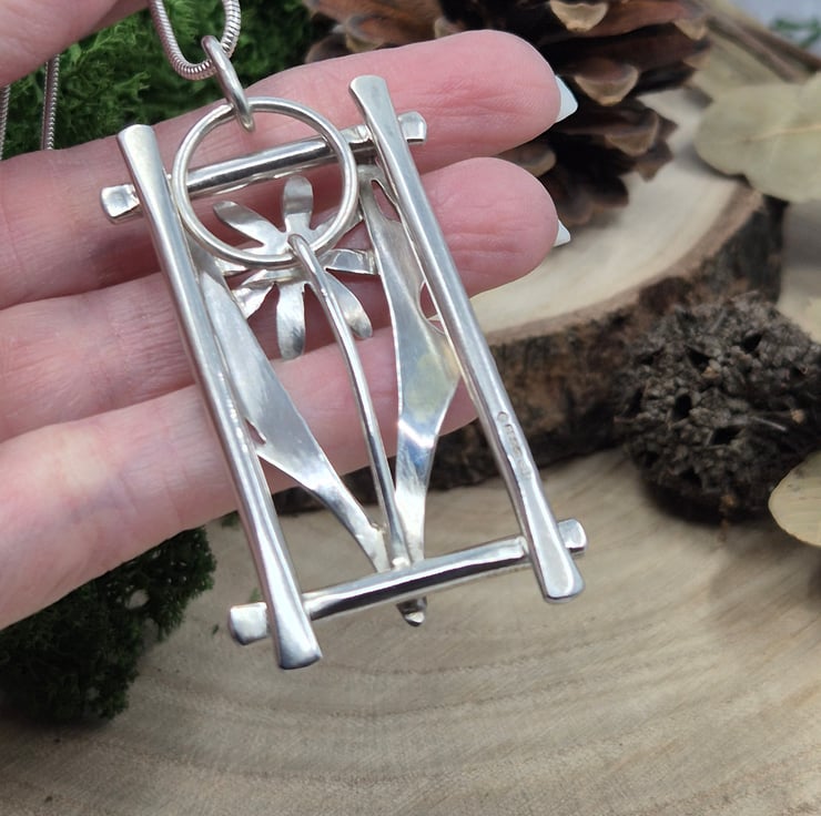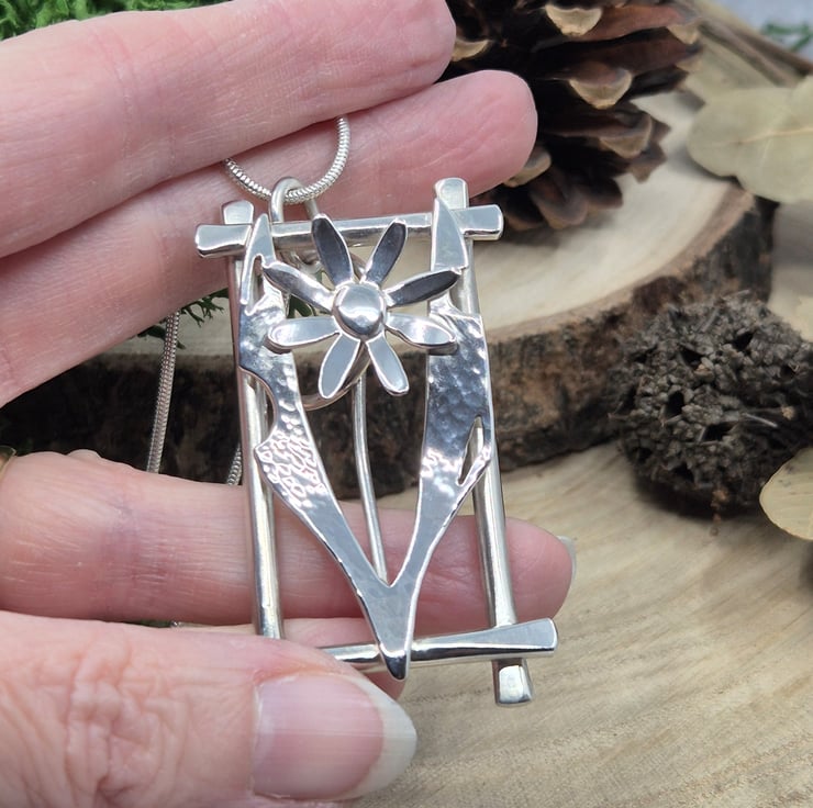 Sterling Silver Framed Single Flower Necklace - Statement OOAK (Hallmarked) 016