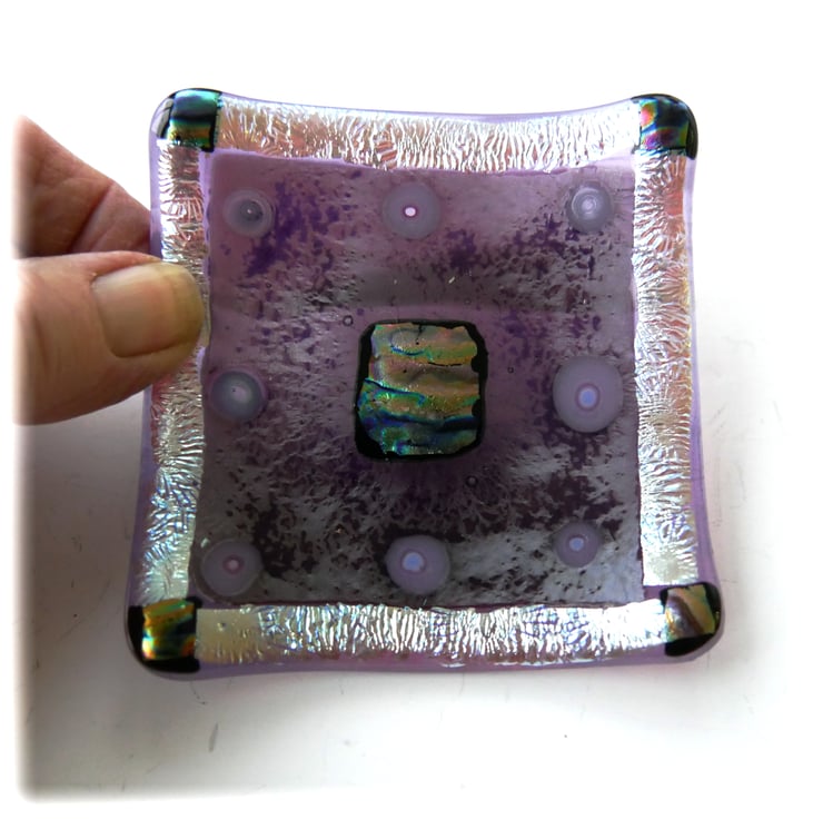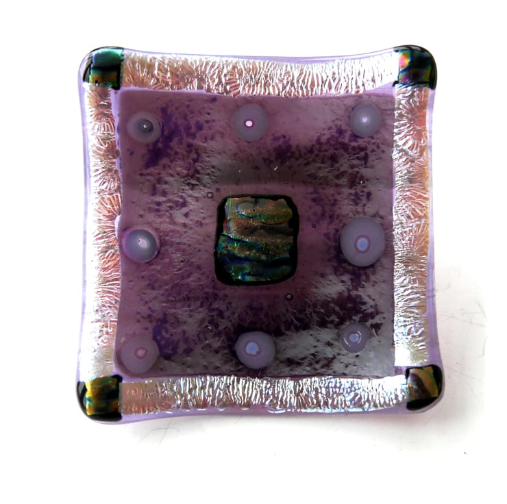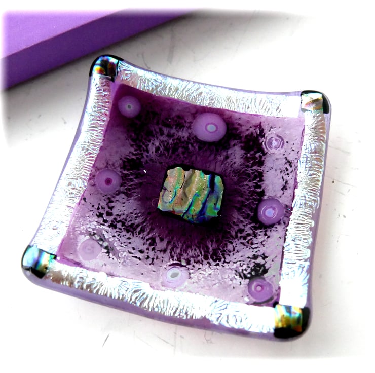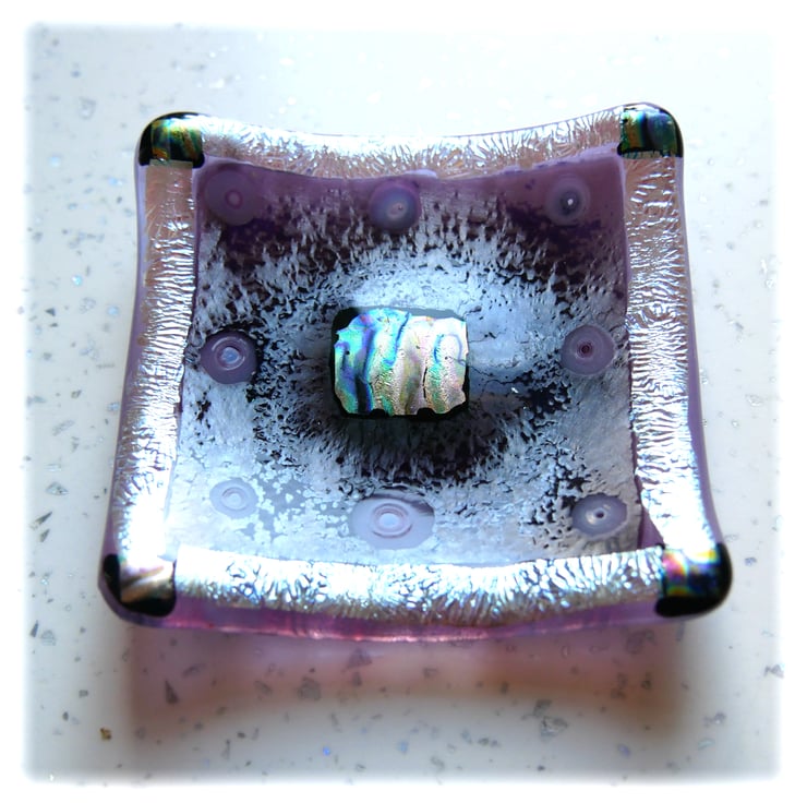 Fused Glass Trinket Dish 9cm Plum Silver Dichroic handmade Gift 049