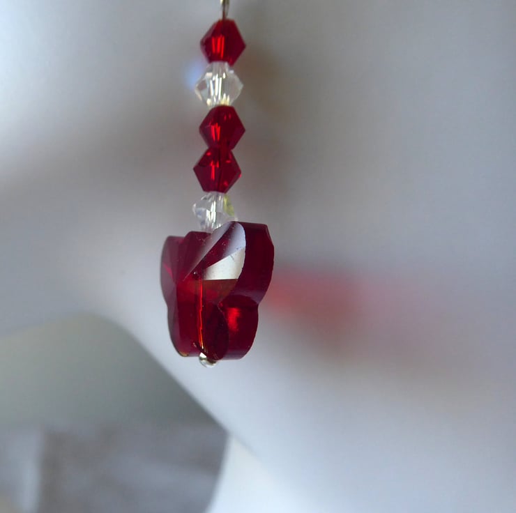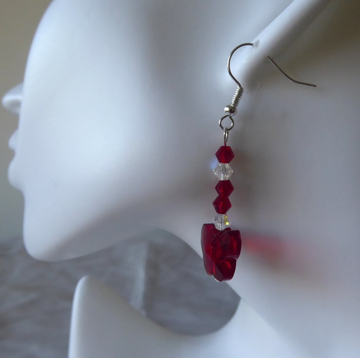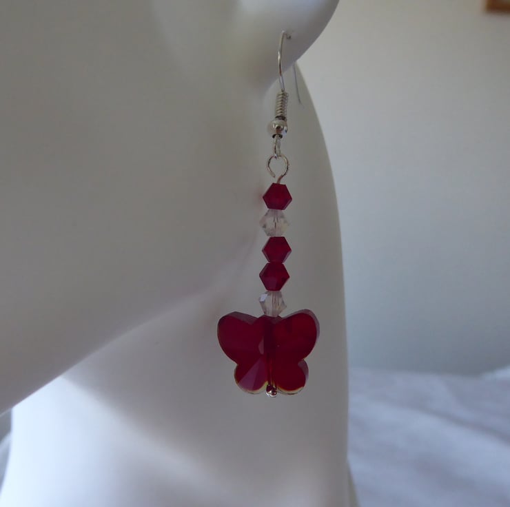 Pair of Red Crystal Glass Butterfly Earrings