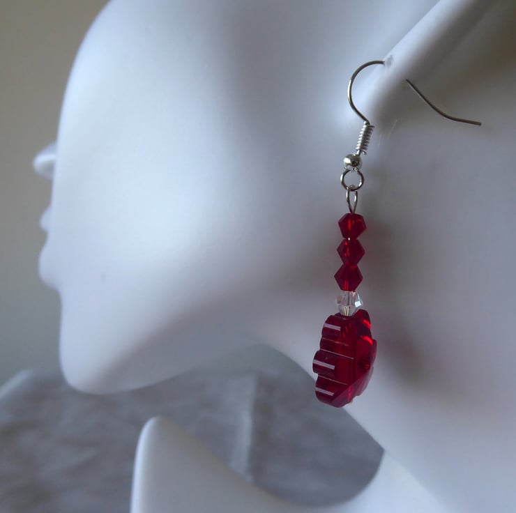 Pair of Red Crystal Glass Teddy Bear Earrings