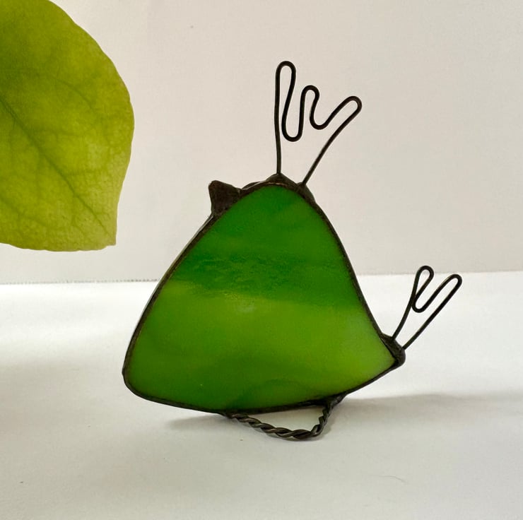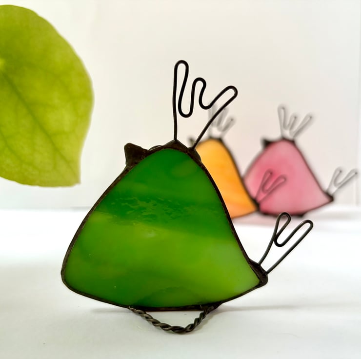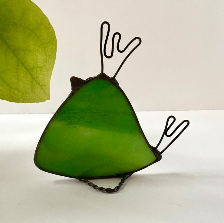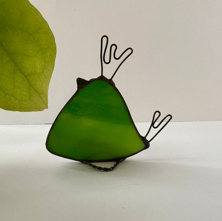 This particular piece have been made from rich emerald green stained glass called Uro by Yough. This stained glass have a beautiful depth of colour and ring mottled texture that comes alive with change of light. I love working with this glass.