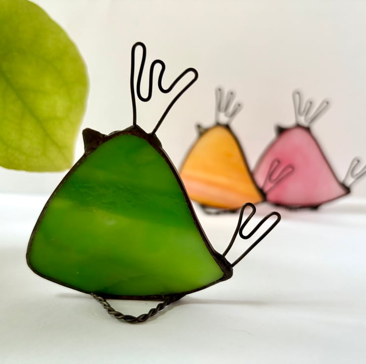 This characterful bird with funky hair style is part of my collection of stained glass standing pieces called Birds with Attitude. These birds have been inspired by my curiosity about birds behaviours.