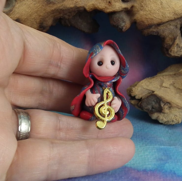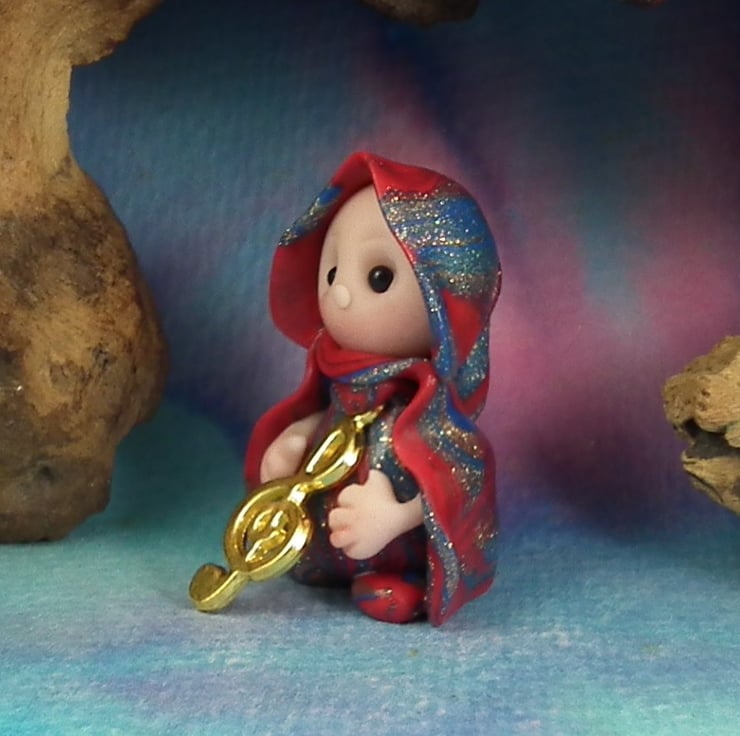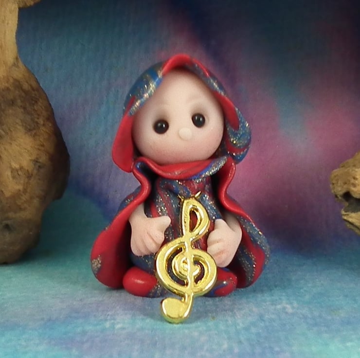 Tiny Musical Gnome 'Min' with treble clef 1.5" OOAK Sculpt