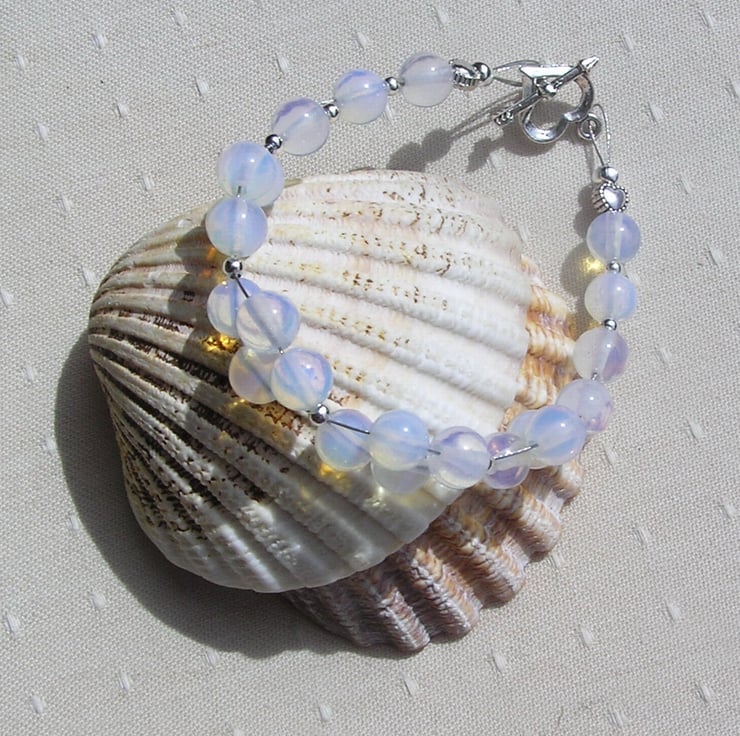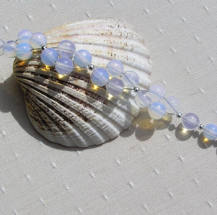 This Stunning Bracelet is made wholly from Opalite round beads clustered together in four's and for that added bit of sparkle tiny Silver spacer beads - a Glistening Cooling effect that will look stunning either worn casually or with something more Elegant for a Special Evening out