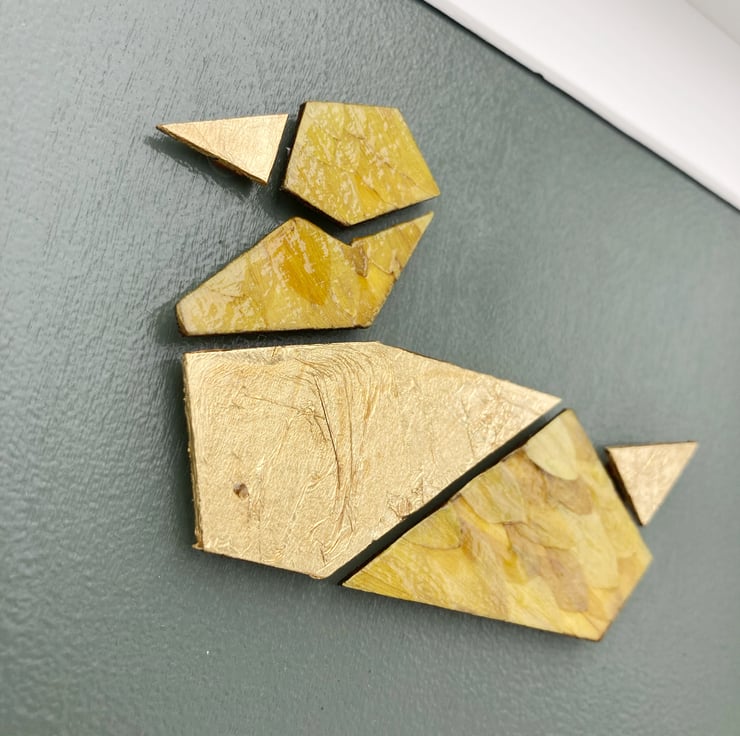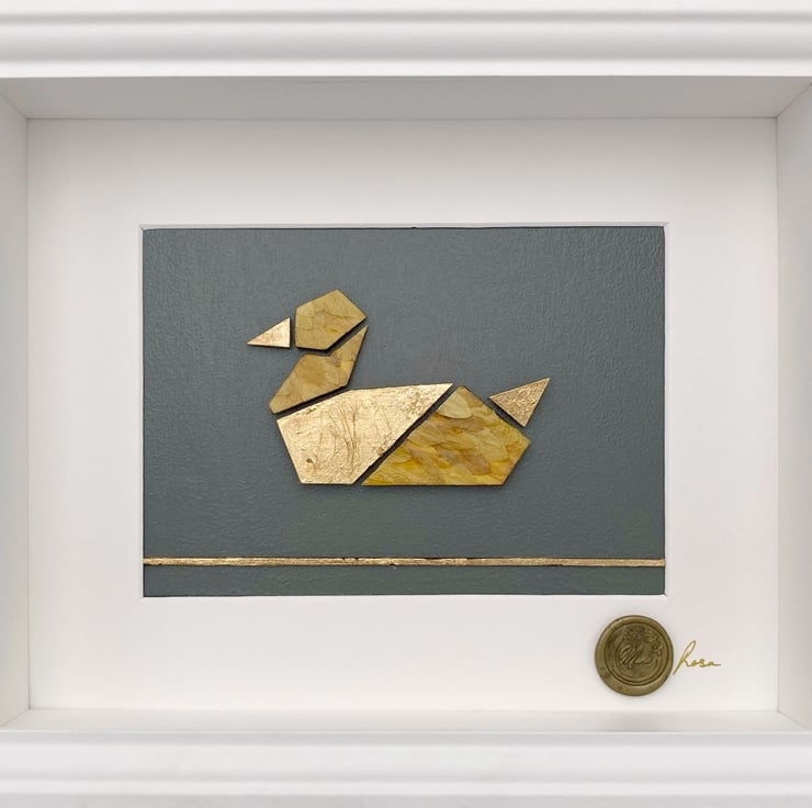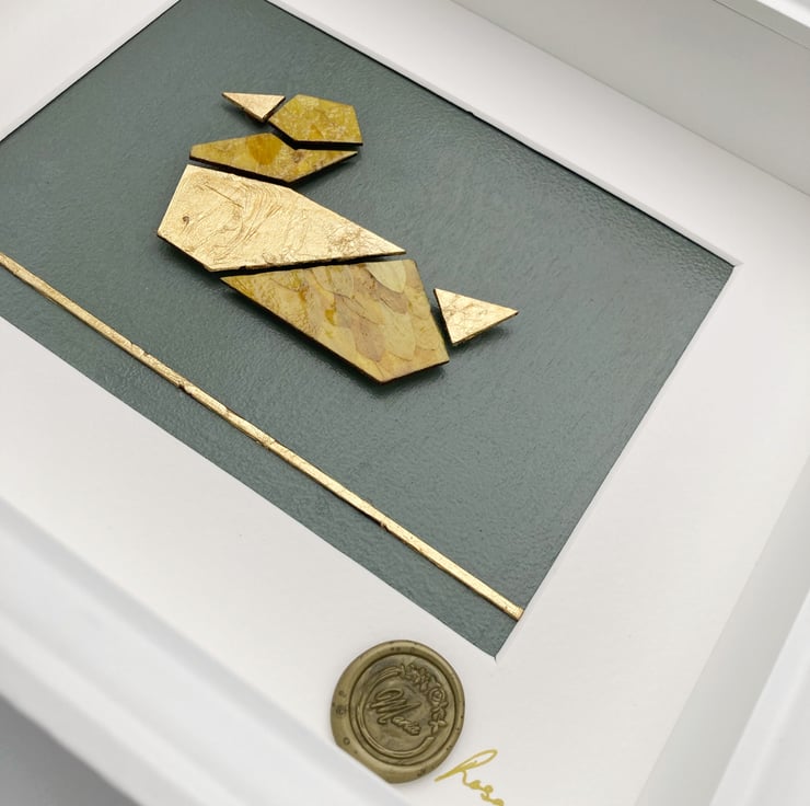 Ankka is a whimsical homage to the quiet charm of woodland life. Daisy petals from Finland are delicately preserved and layered by hand on responsibly sourced Finnish birch. Subtle accents of gold leaf catch the light, creating a warm, luminous effect, while eco-friendly acrylic and UV varnish ensure long-lasting protection. Framed with AR 92 anti-reflective glass, this piece invites viewers to pause and appreciate the delicate textures and natural poetry of the scene. A unique addition to any collection of botanical or animal-inspired art.