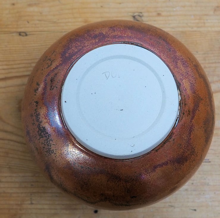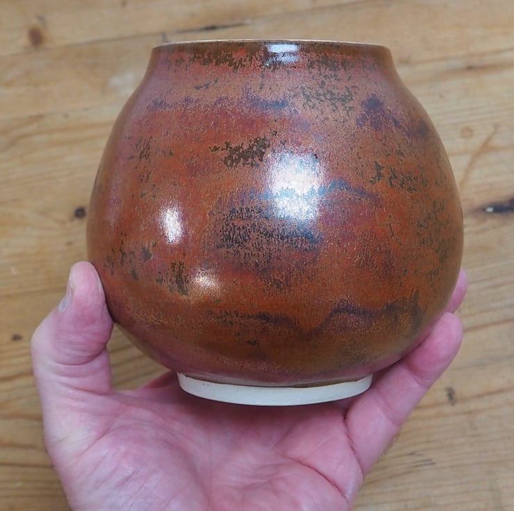 Stoneware pottery moon vase or jar. Hand made and thrown on my potters wheel. Finished in an antique copper glaze.
