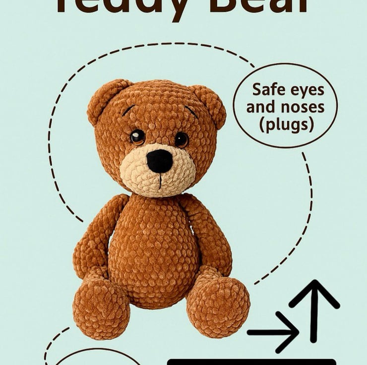 This adorable plush teddy bear is lovingly handmade from 100% micro polyester yarn, making it incredibly soft and cuddly.