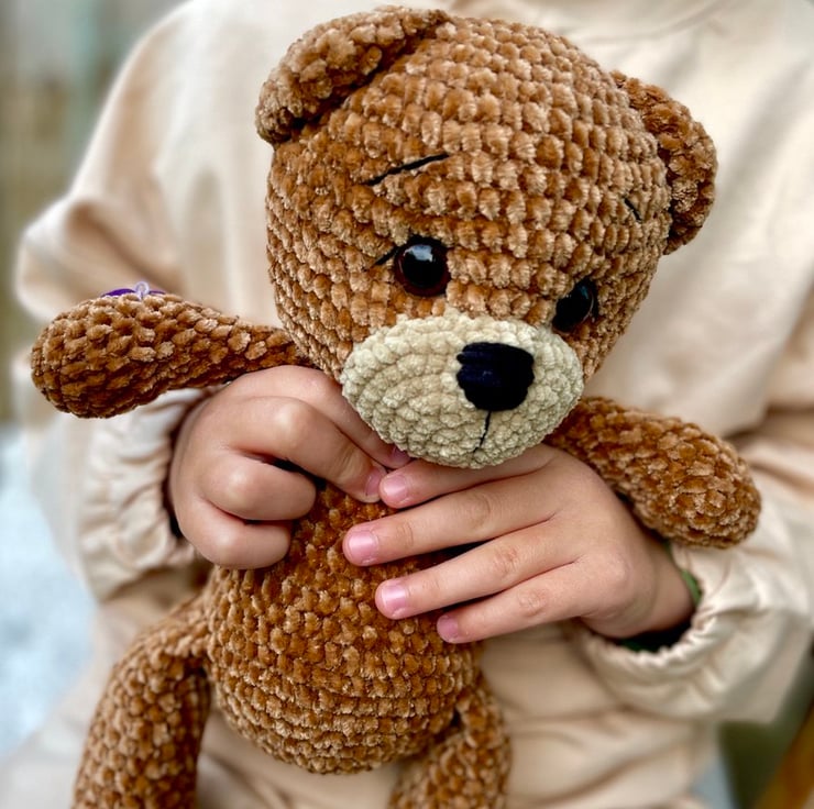 The bear’s eyes and nose are securely attached with safety plugs, so it’s safe even for little ones.