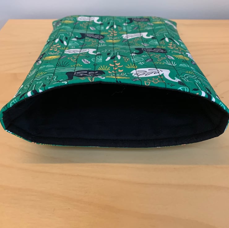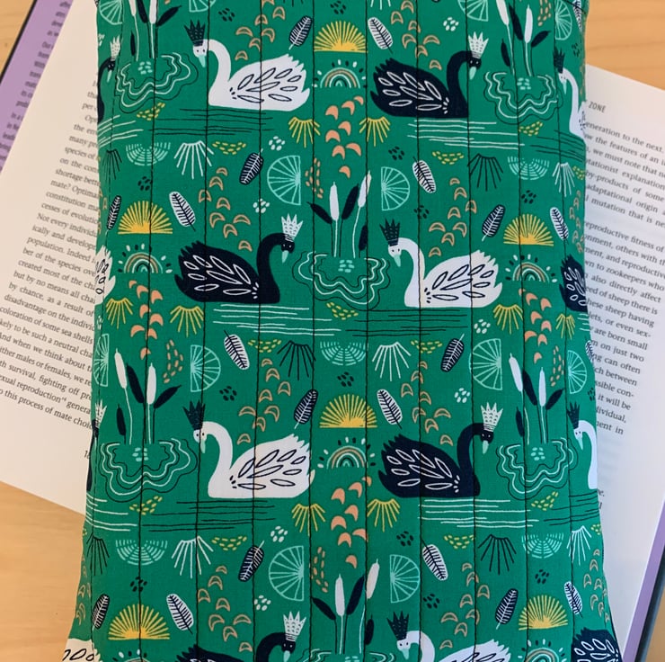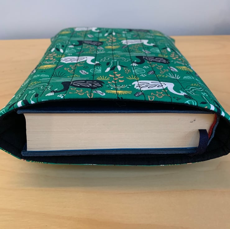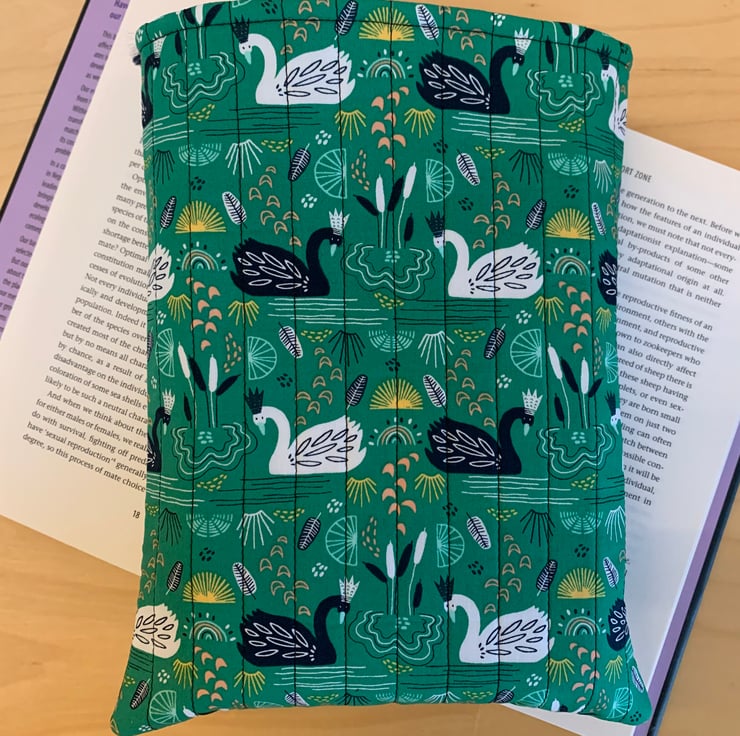 The quilted book sleeve is padded to protect your book.