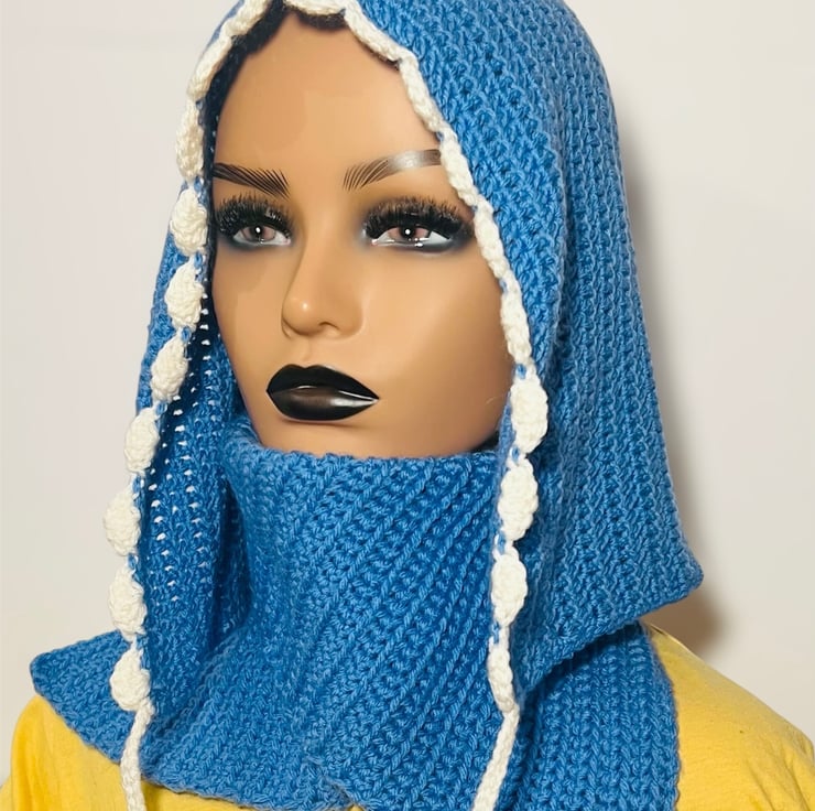 crochet balaclava hooded hat and cowl scarf set keep you warm and cosy on cold chilly days