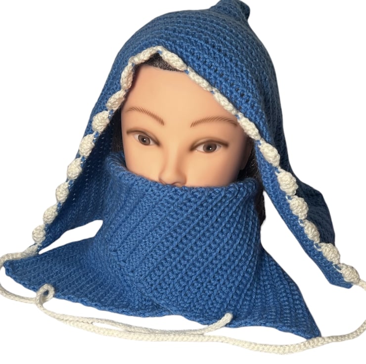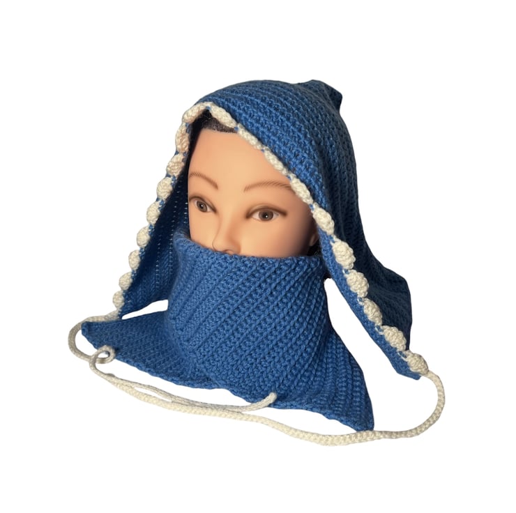crochet balaclava hooded hat and cowl scarf set keep you warm and cosy on cold chilly days