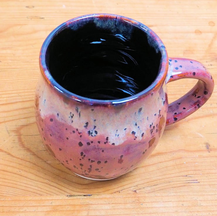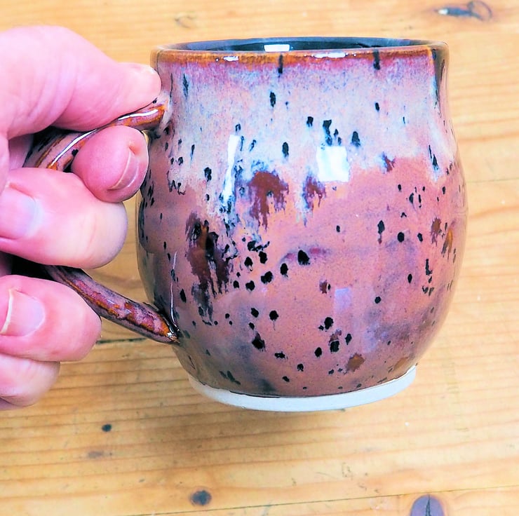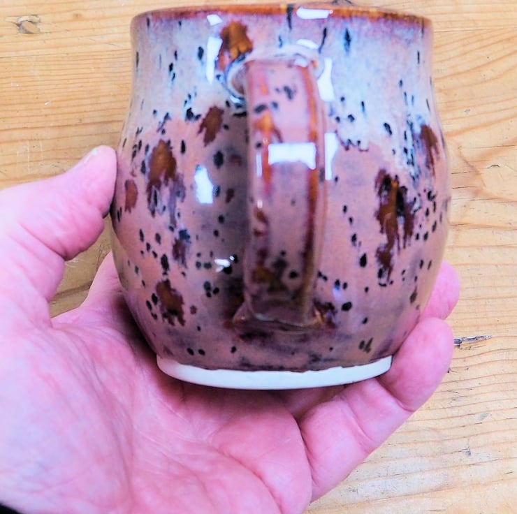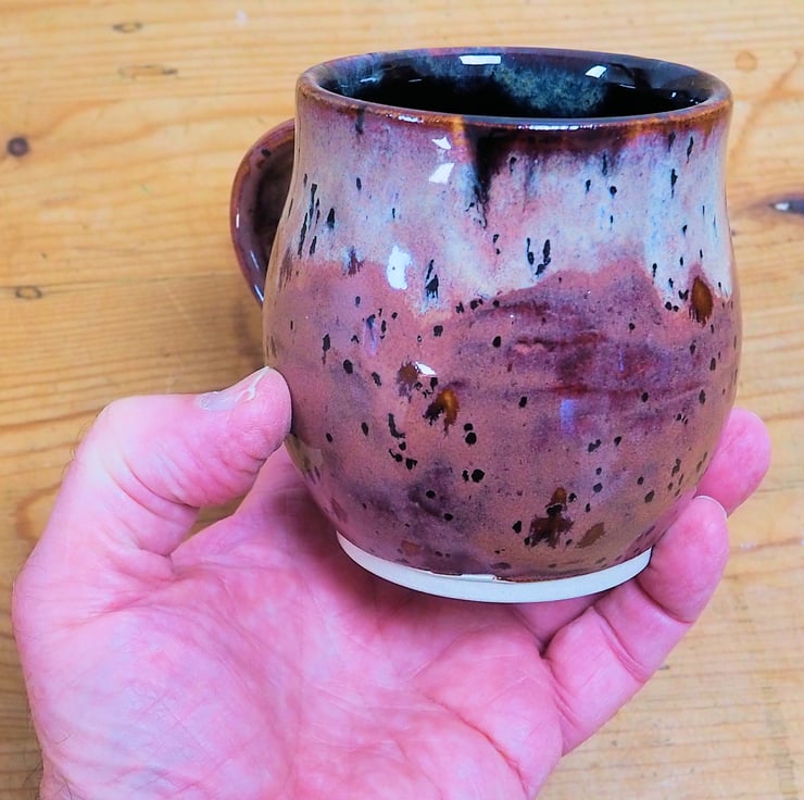Large pottery mug finished in multi-coloured purple plum glaze, handmade