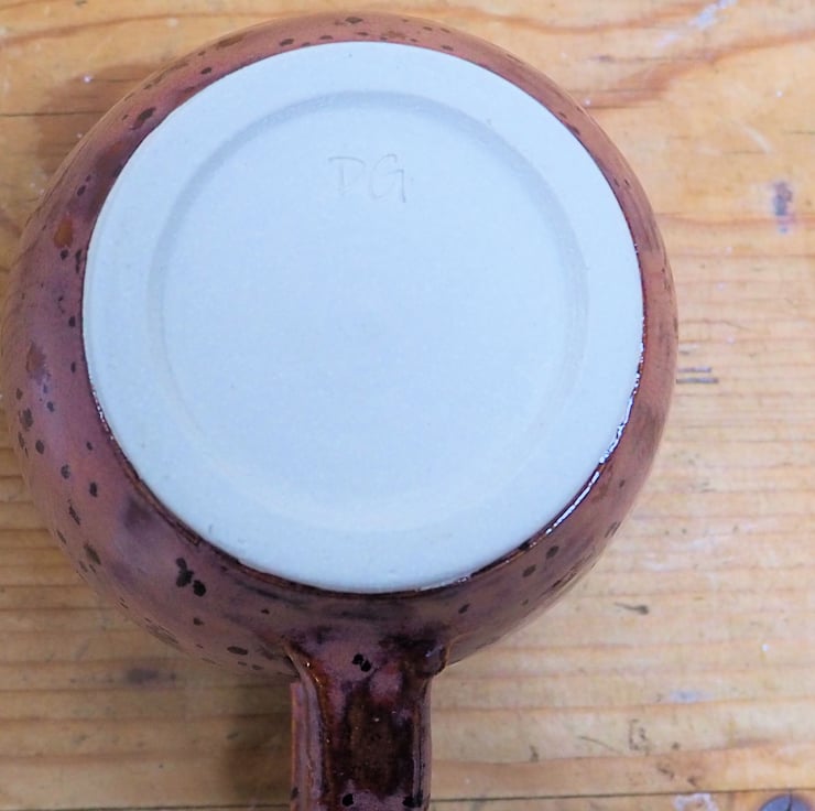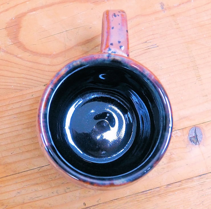 Coffee, tea or hot chocolate mug. Hand thrown on my potters wheel and glazed in a multi-coloured purple plum with black glaze inside.