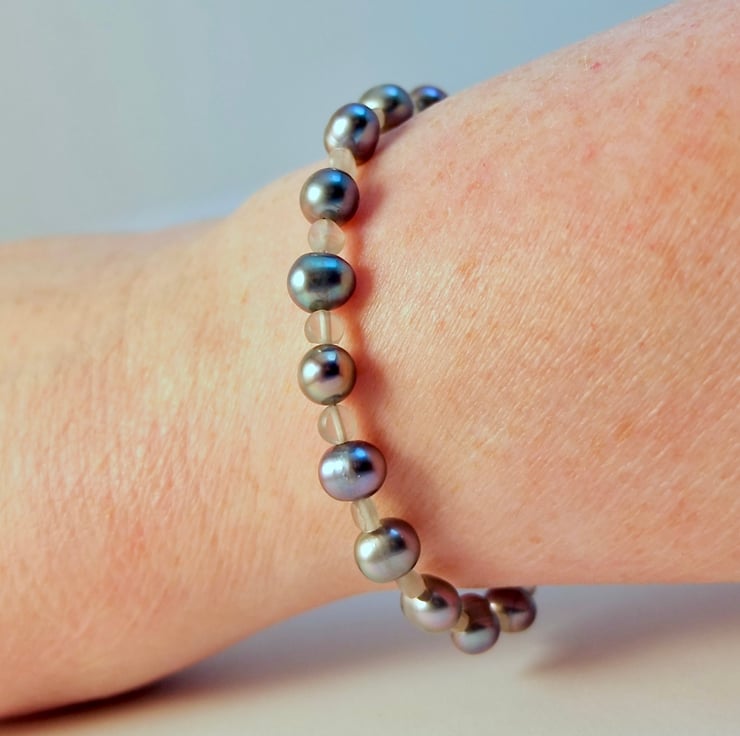 The Pearls are separated by 4mm AA grade faceted grey Moonstone coin beads.