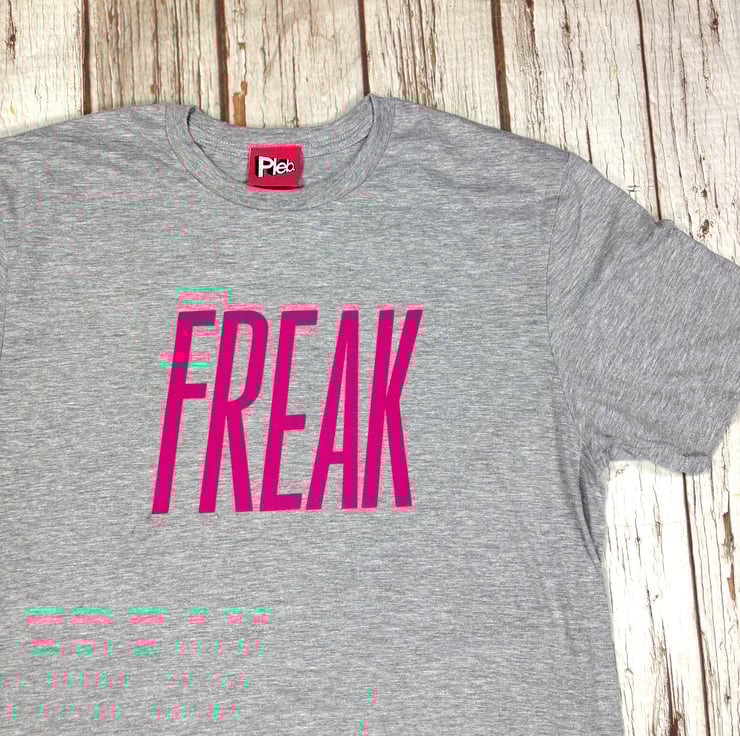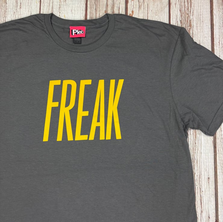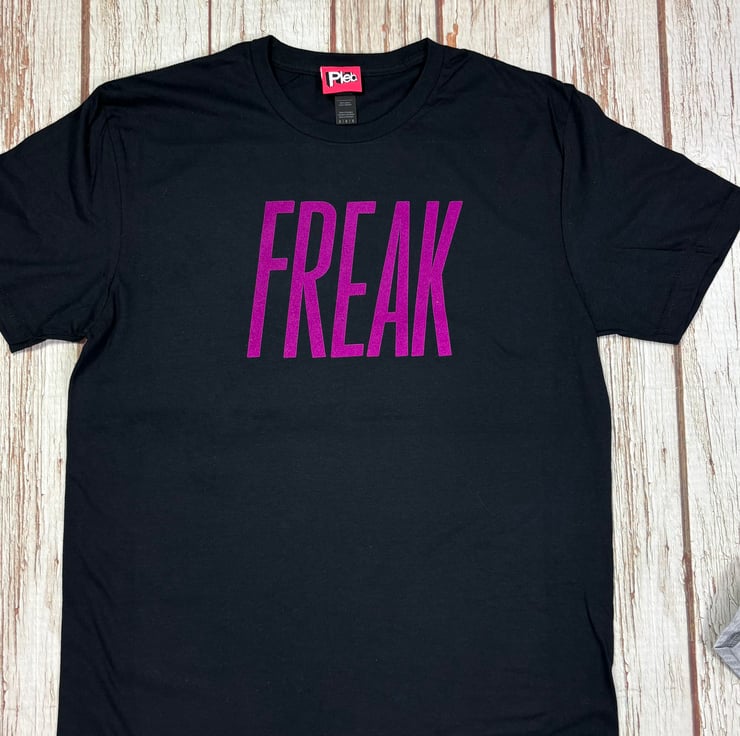 This T-shirt features a bold 'Freak' message available in 8 colours and sizes from Small to 2XL. Perfect for proudly showing off your wonderful weirdness!