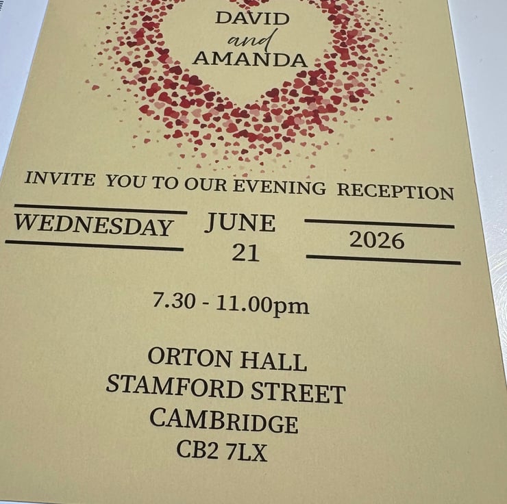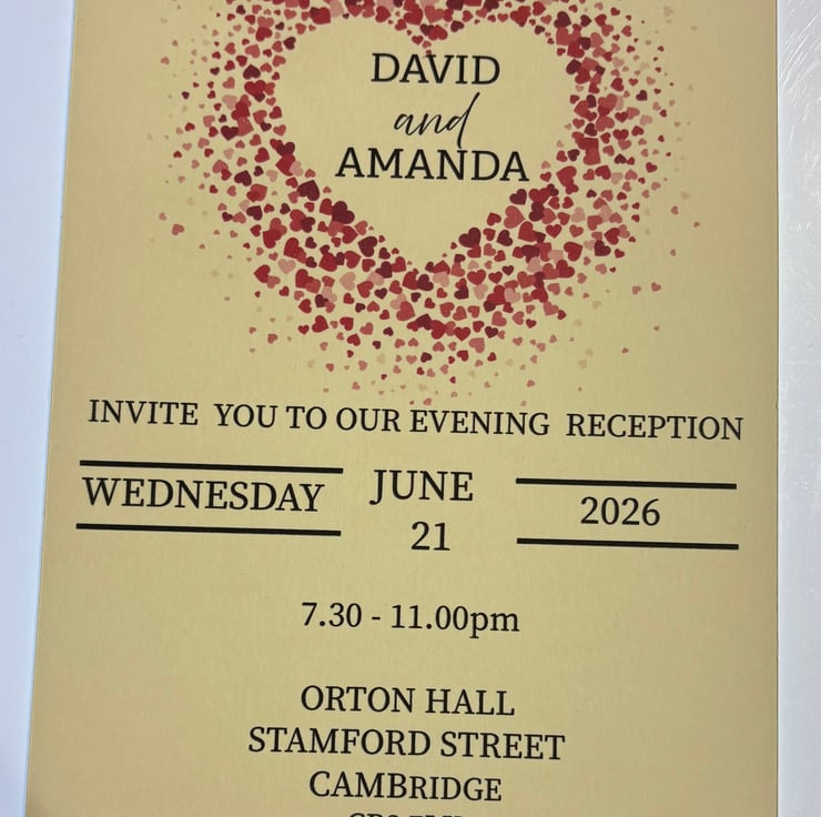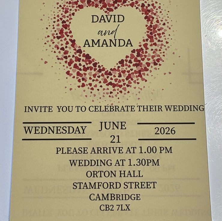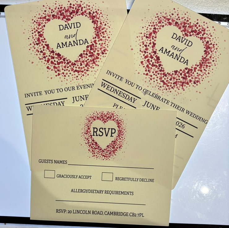 A beautifully romantic 5 x 7 inch wedding invitation featuring your signature heart-confetti design. Printed on smooth, premium cardstock and paired with a handmade envelope, this invitation is perfect for couples looking for a soft, elegant and personal stationery style.