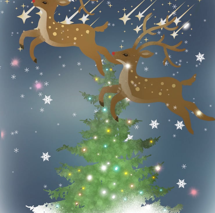 A beautiful Giclee printed Christmas card featuring Dancing Reindeers. This card has been printed from my own original sketched drawing. All cards are printed on archival 230gsm matt paper to ensure artist quality and fade resistance.