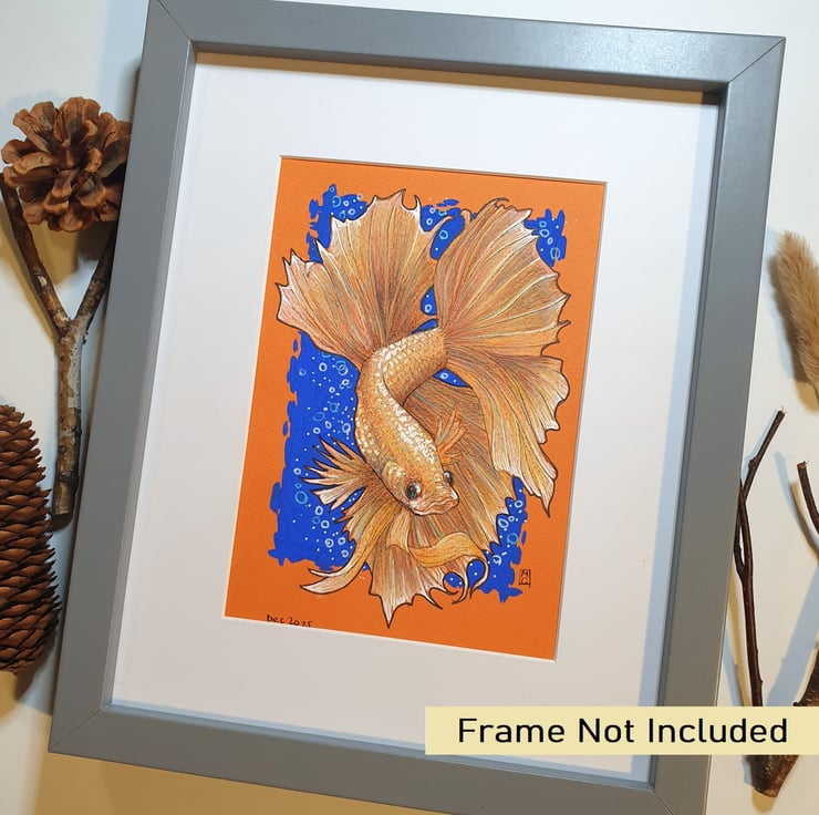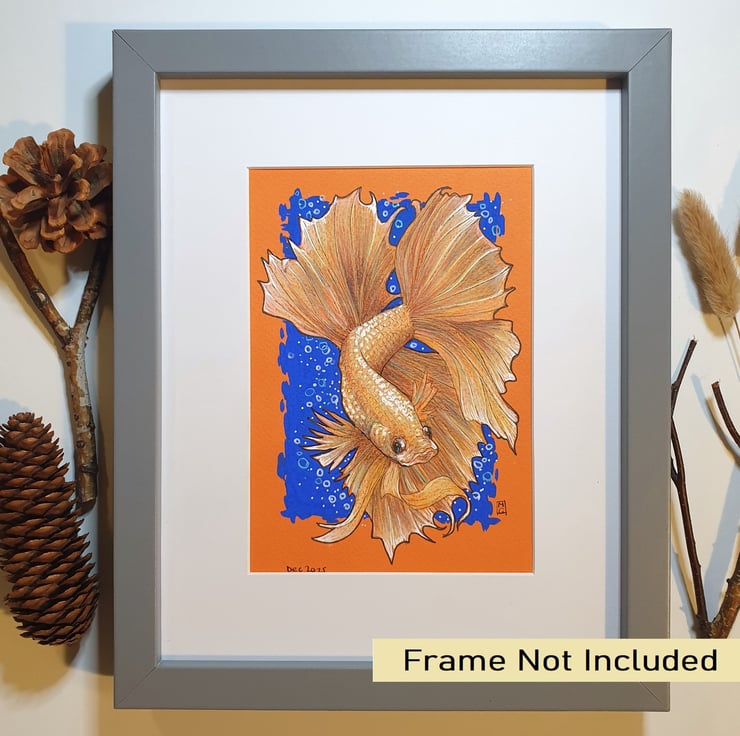 Fancy Betta Fish drawing, original artwork, fish wall art