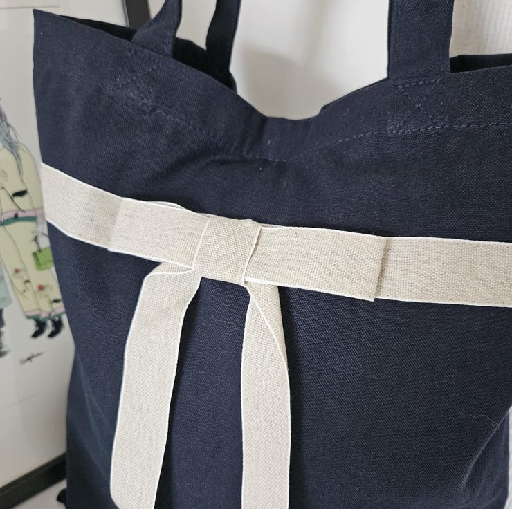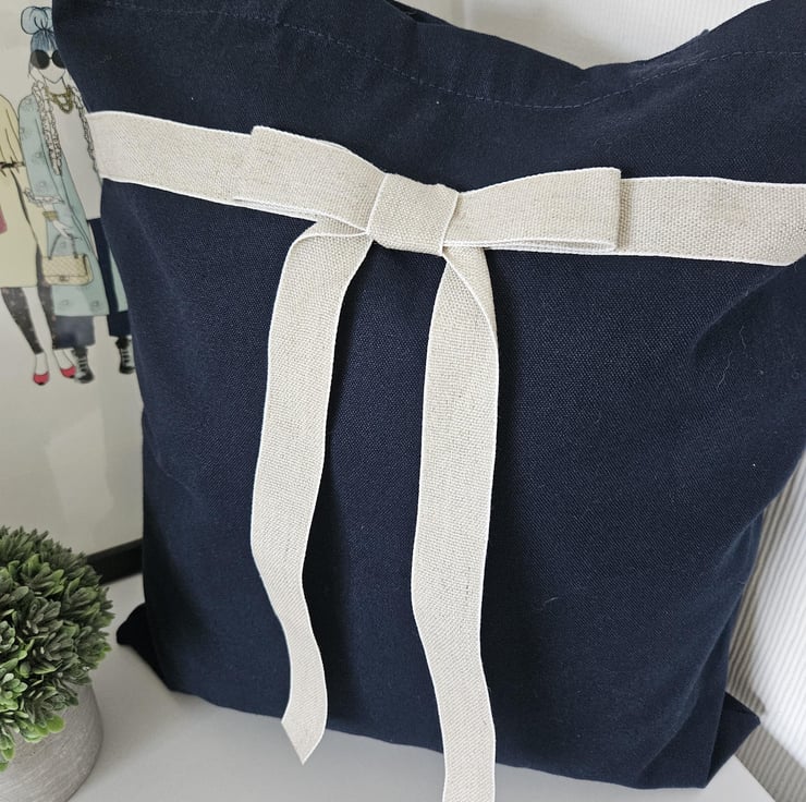 Organic Cotton Tote Bag: Navy Blue with Linen Bow