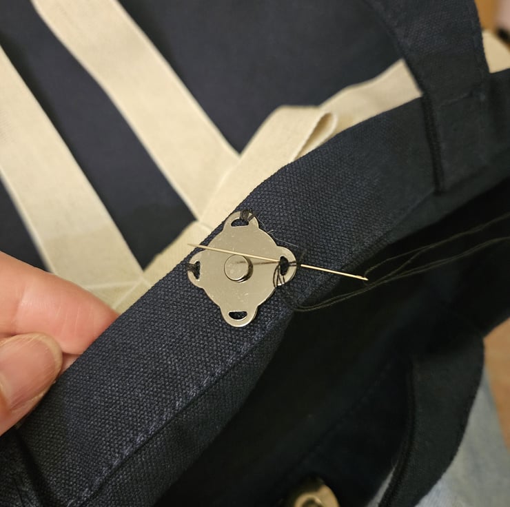 Features a hand sewn magnetic button to keep your items secure.