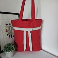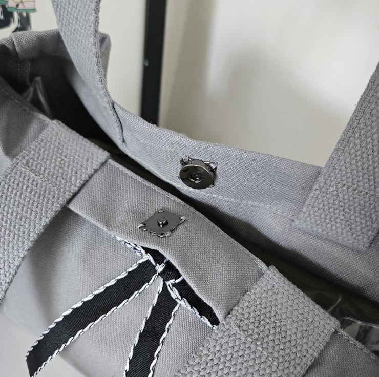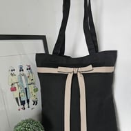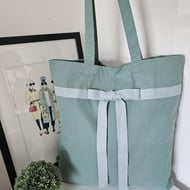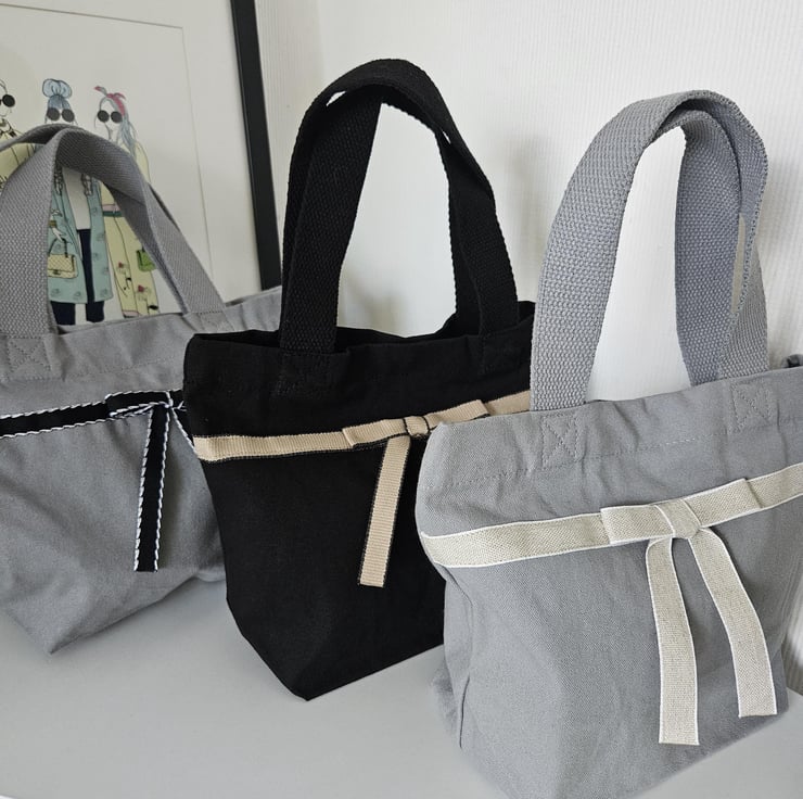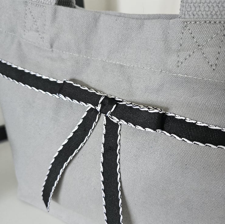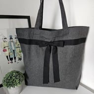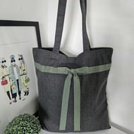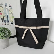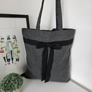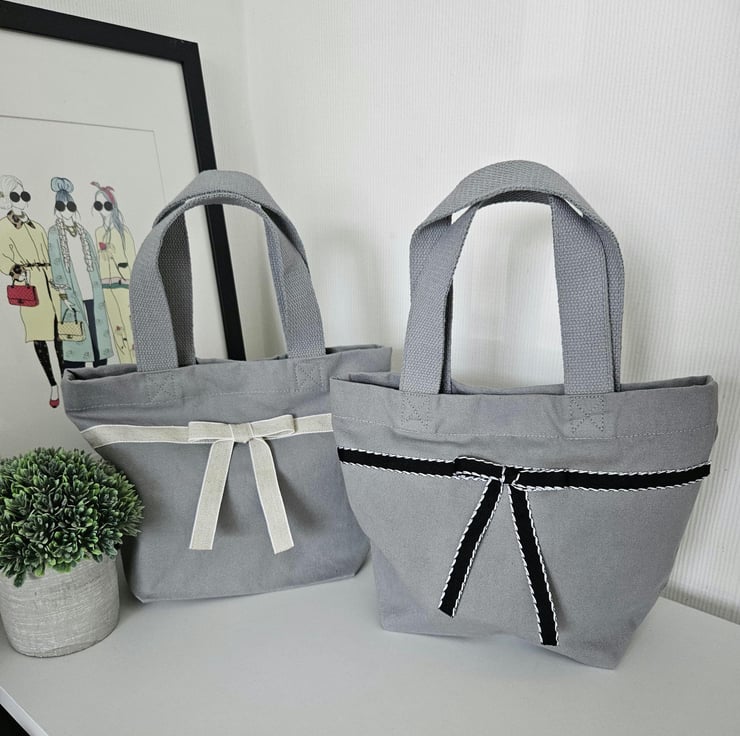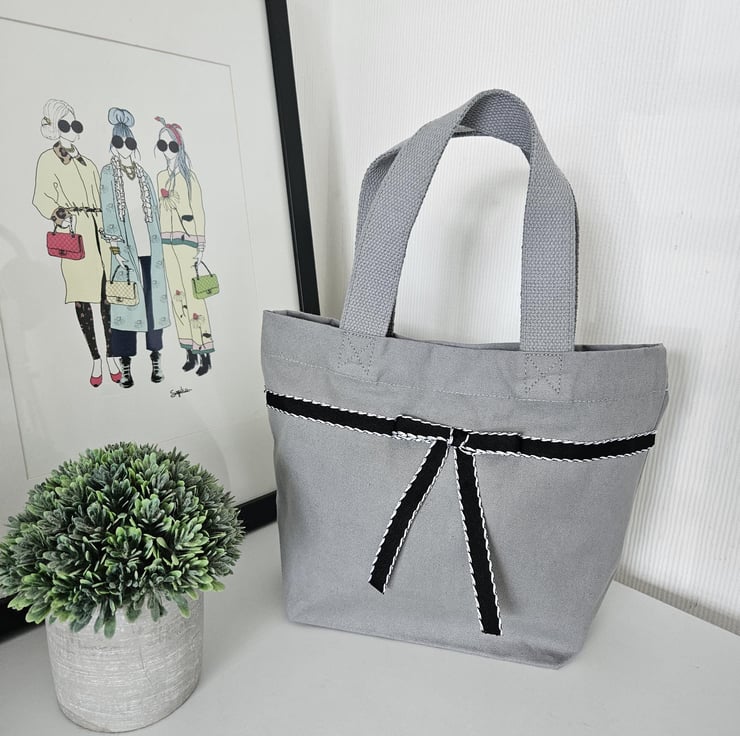 Organic Cotton Mini Tote Bag: Grey Ribbon Bow Detail