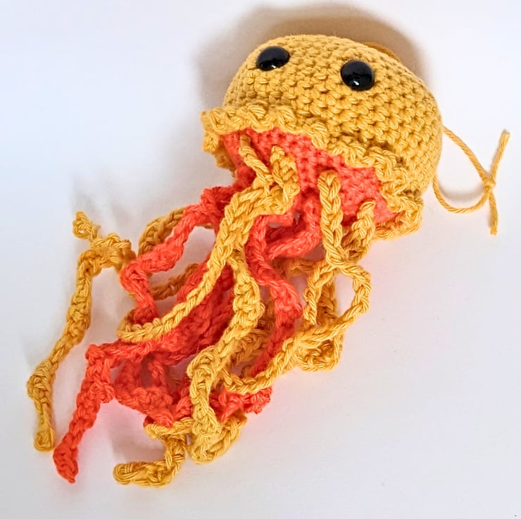 Joey the jellyfish makes a great gift for everyone. He is the perfect size to put in a stocking. He is 7cm wide and 16cm tall (including tentacles). Hang him up and put him on display!