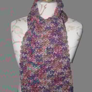 A very pretty pink scarf with flecks of orange, blue and yellow throughout. It is very soft to the touch and is made of 94% Recycled Polyester, 4 % Acrylic, and 2% Viscose. The scarf measures approximately 66 inches (L) and 9 and a half inches (W). I have made every effort to capture the true colour of the scarf but it may appear slightly different on your computer screen.