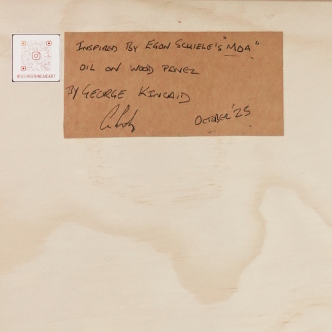 "Like Moa" Inspired by Schiele. Oil Painting on wood panel 23x16in (59x41cm)
