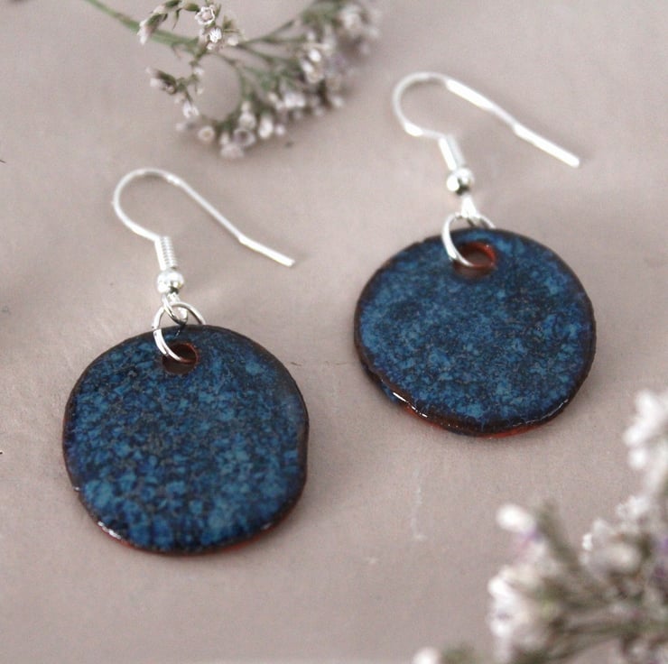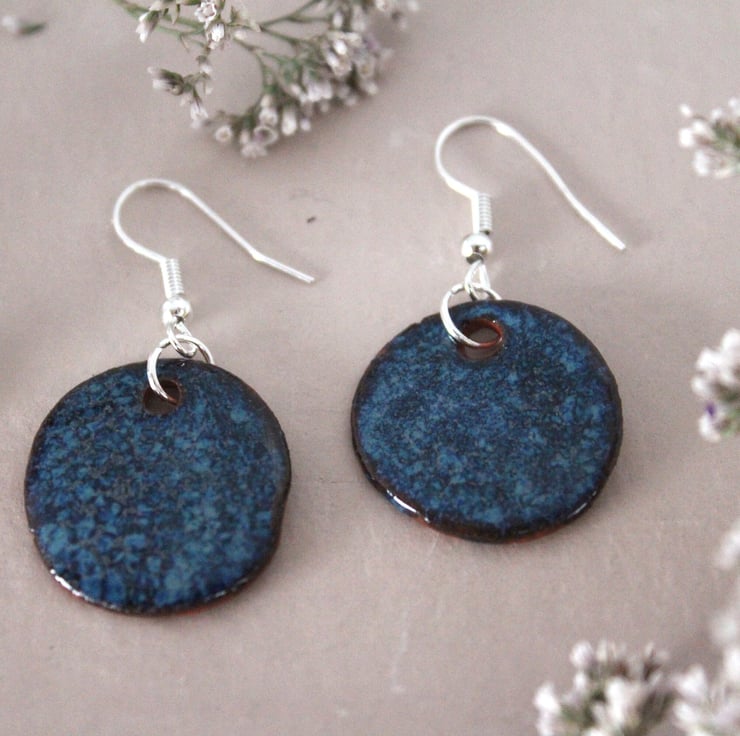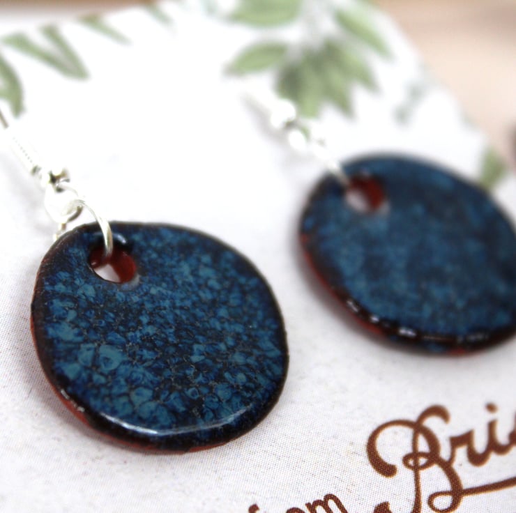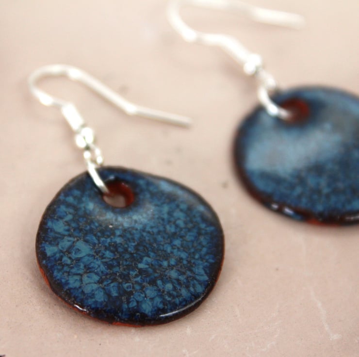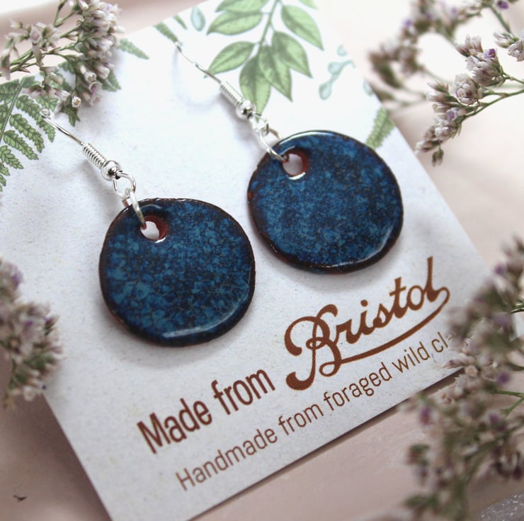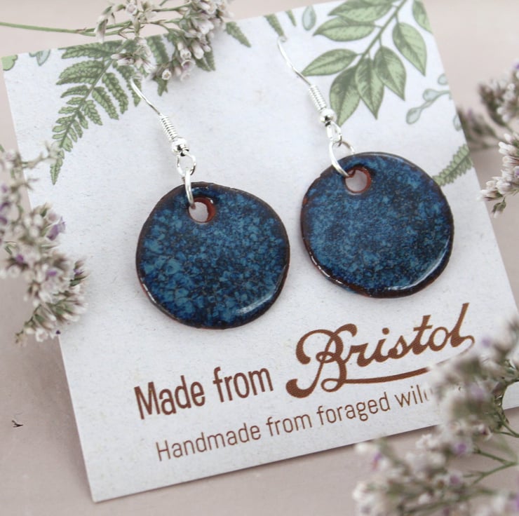 Handmade foraged clay ceramic earrings. Floating Blue glazed Bristol earrings.