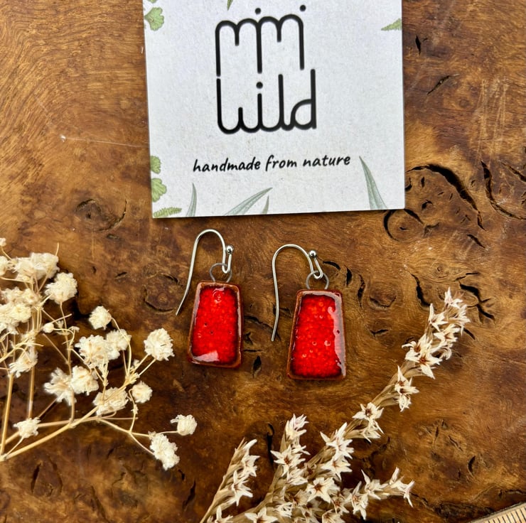 These beautiful handmade bright lava red ceramic earrings are completely unique.