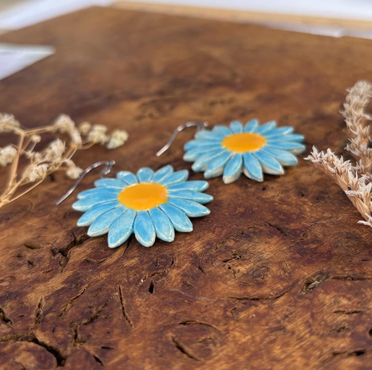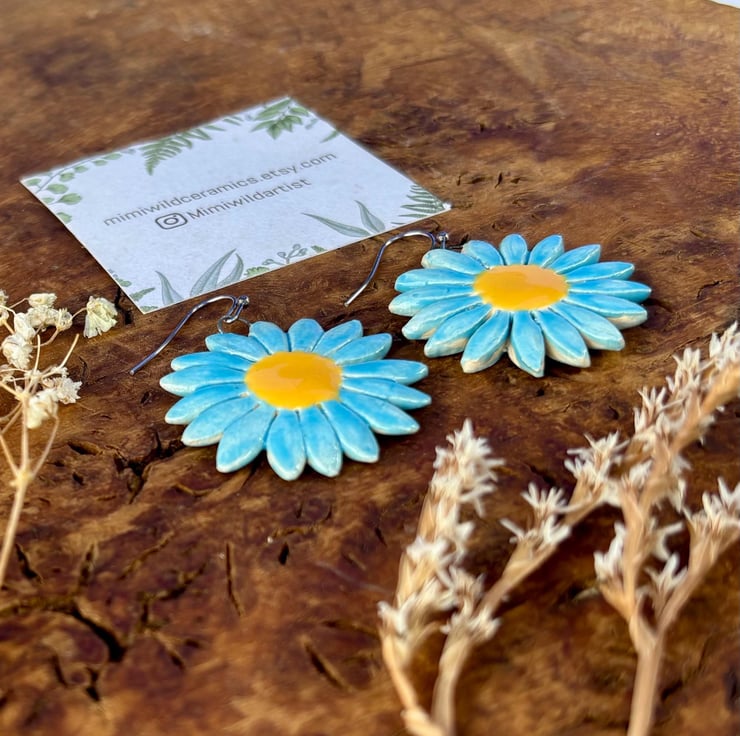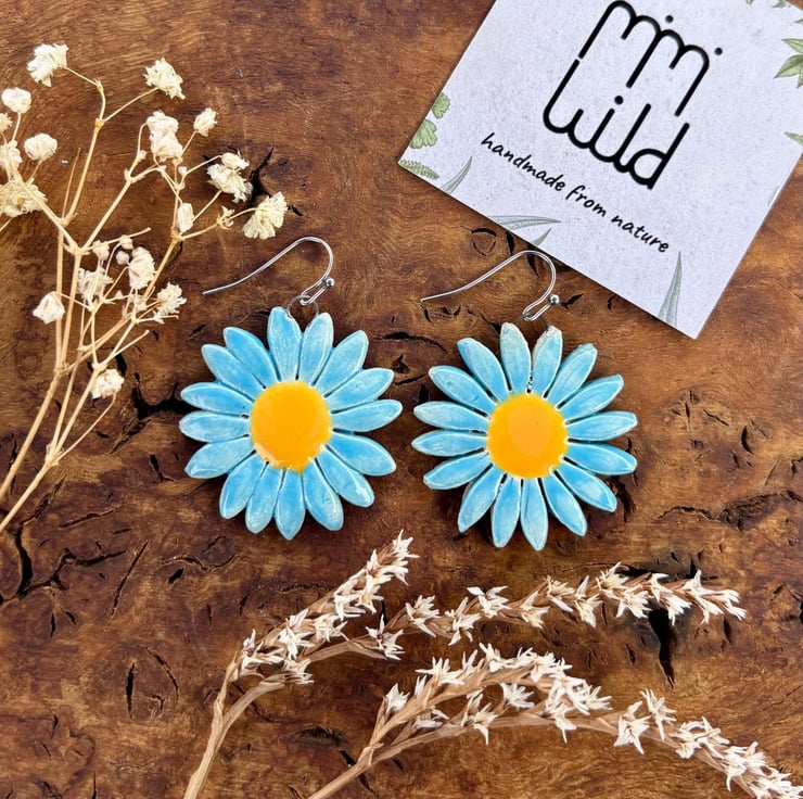 These big bold handmade floral daisy ceramic earrings are completely unique.