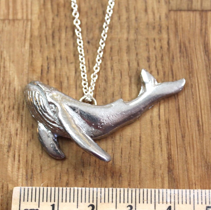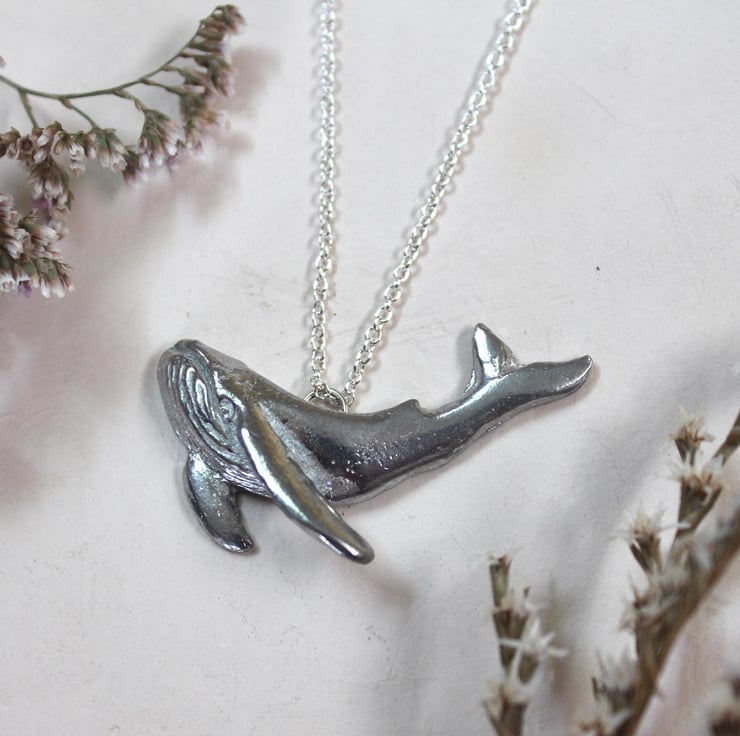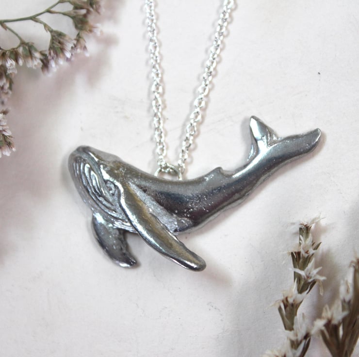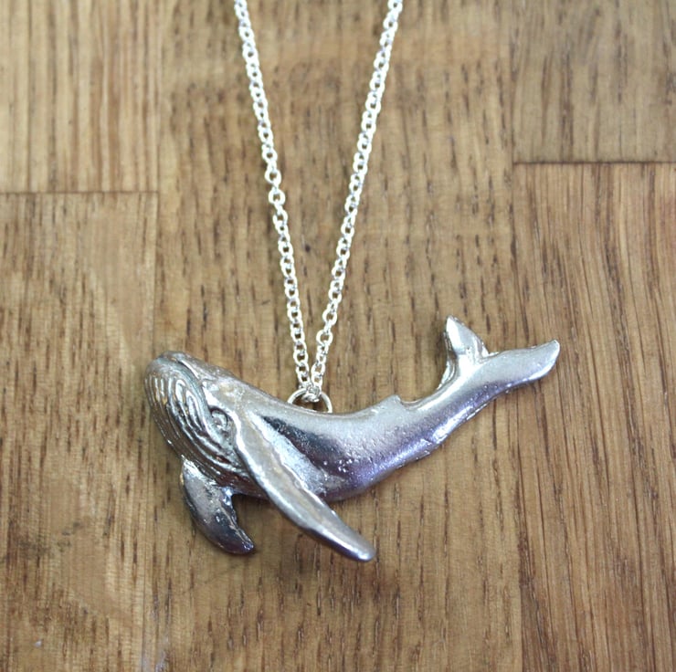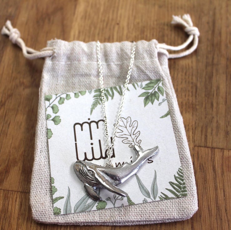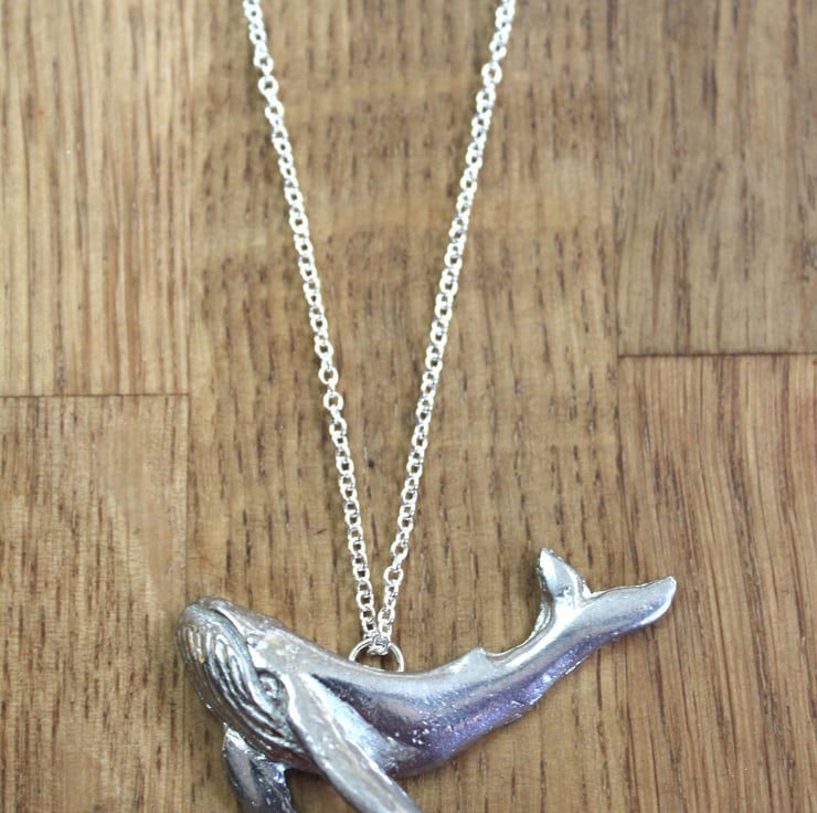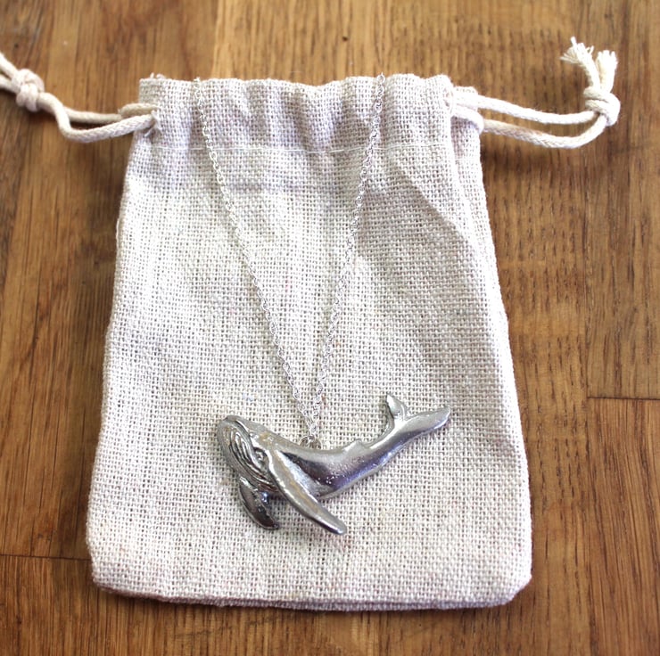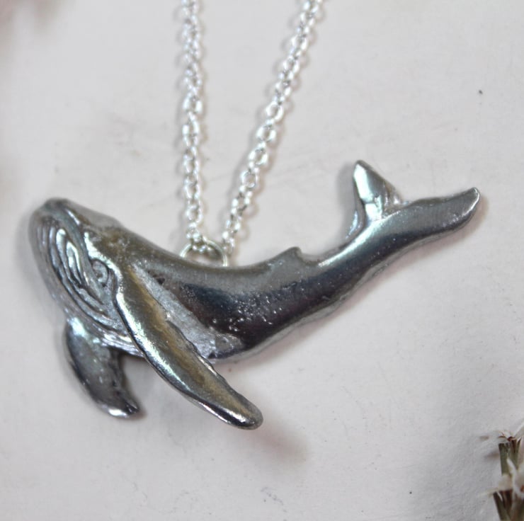 Handmade pewter humpback whale necklace. This charming little whale was hand-cast using high quality pewter, carved and then polished.