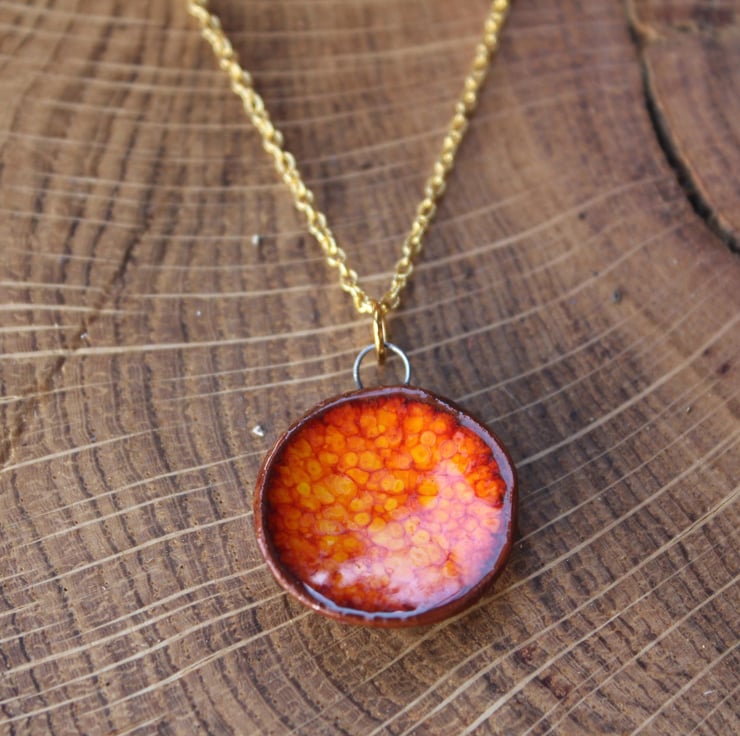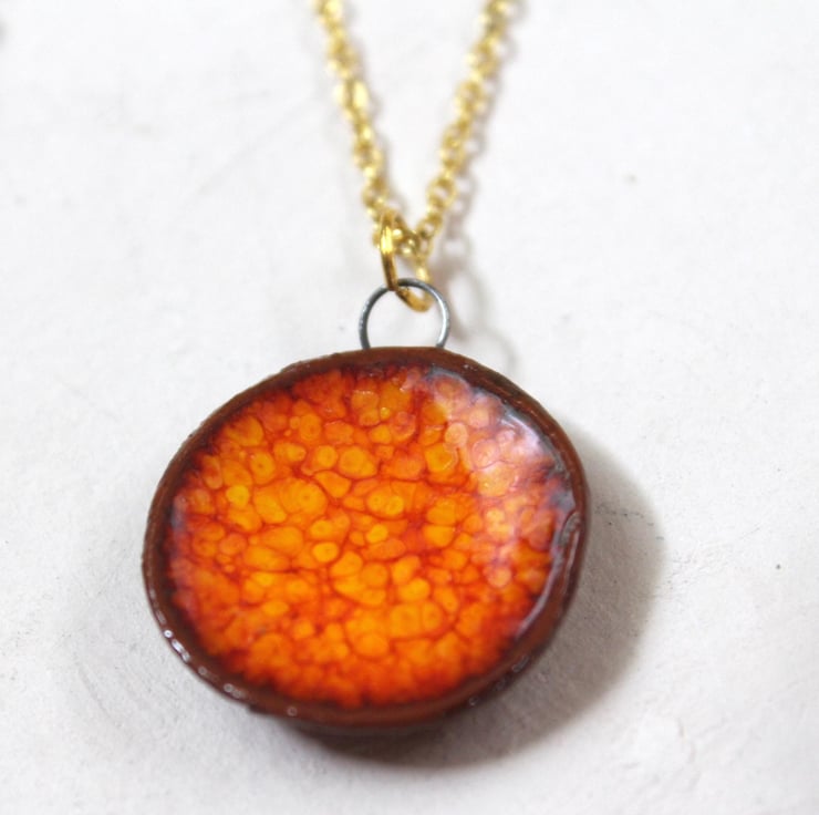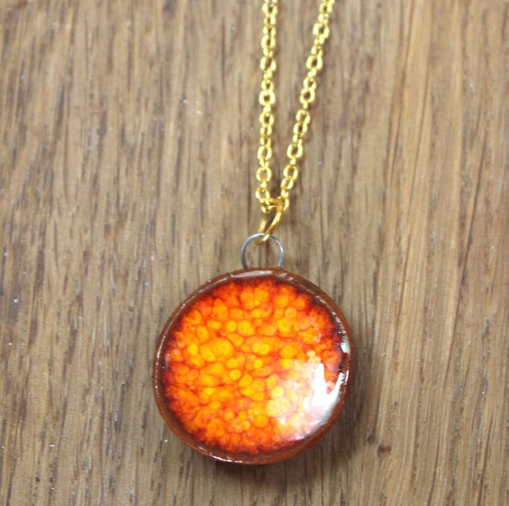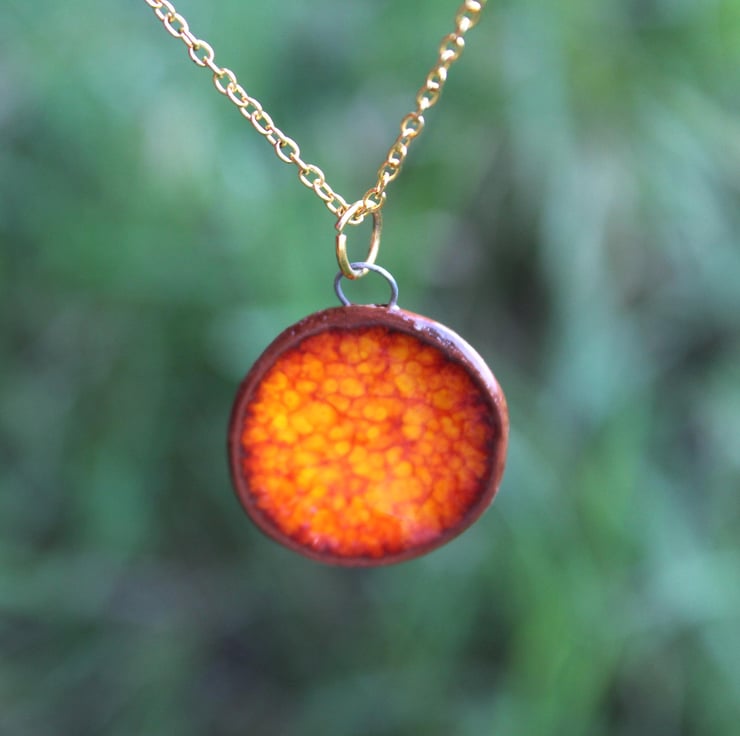 This beautiful handmade burnt orange ceramic necklace is completely unique.