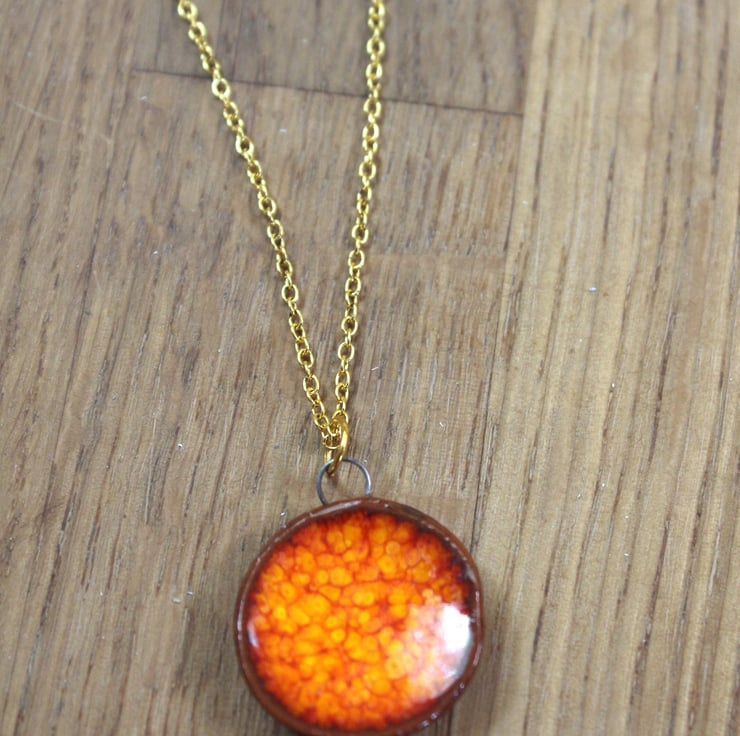 Handmade Bright Orange Ceramic Necklace, Gold Chain, Colourful Glazed Clay Penda