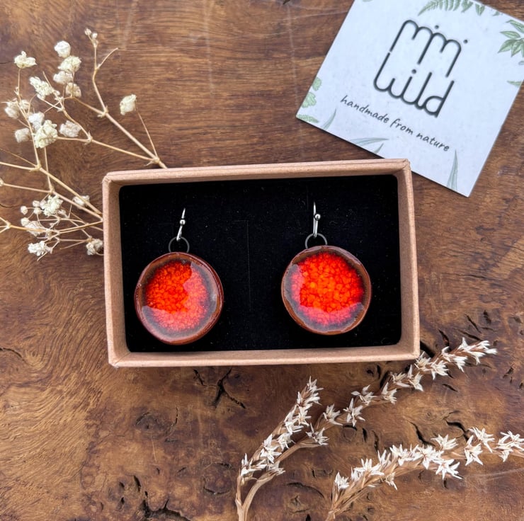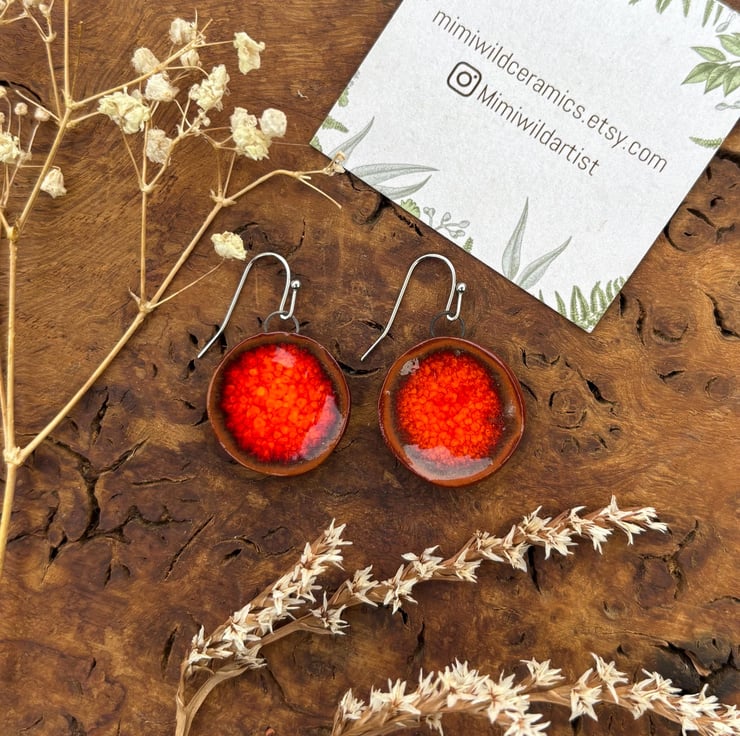 These beautiful handmade bright orange round ceramic earrings are completely unique and every pair are slightly different.