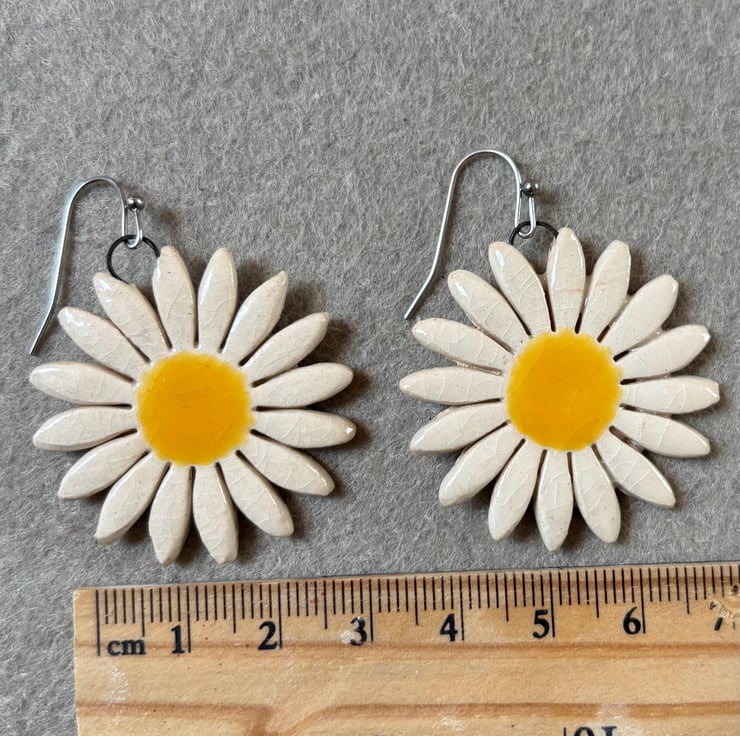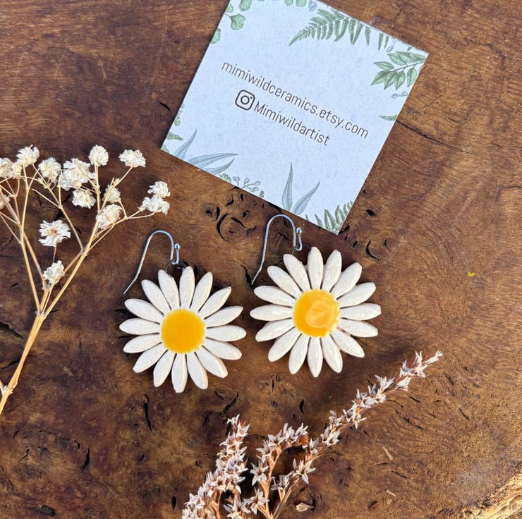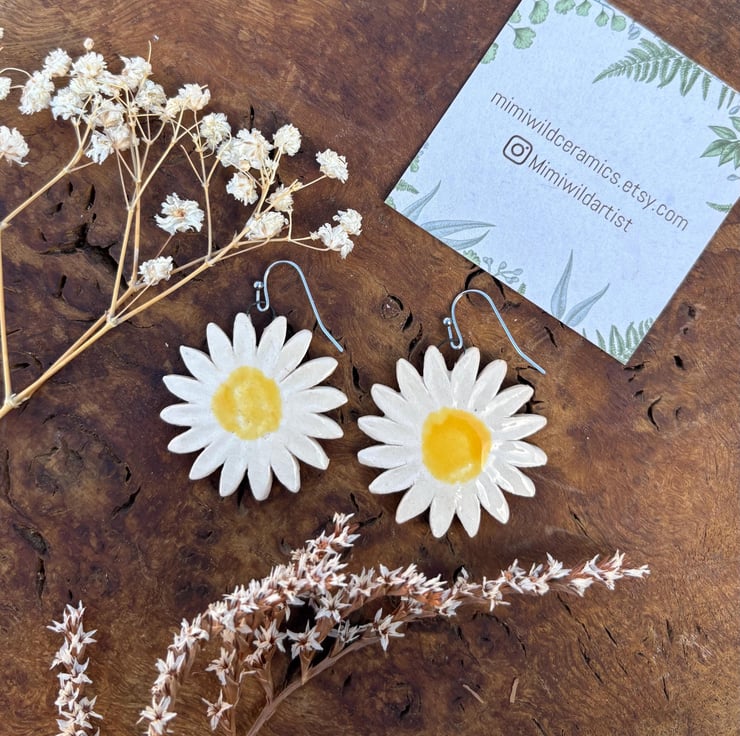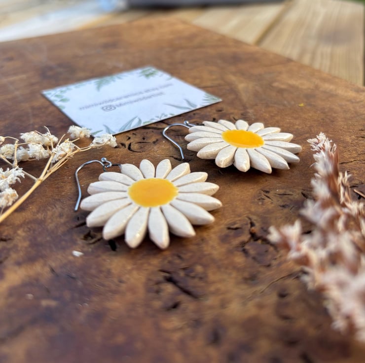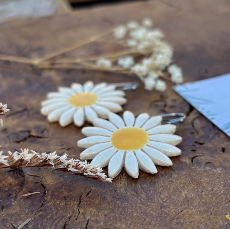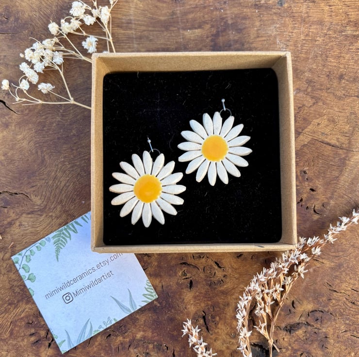 These beautiful handmade floral daisy ceramic earrings are completely unique.