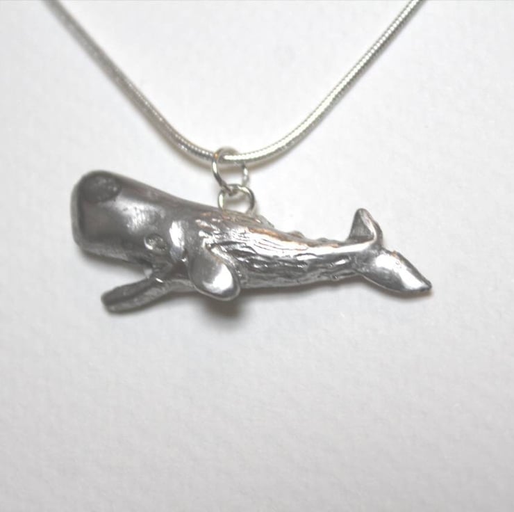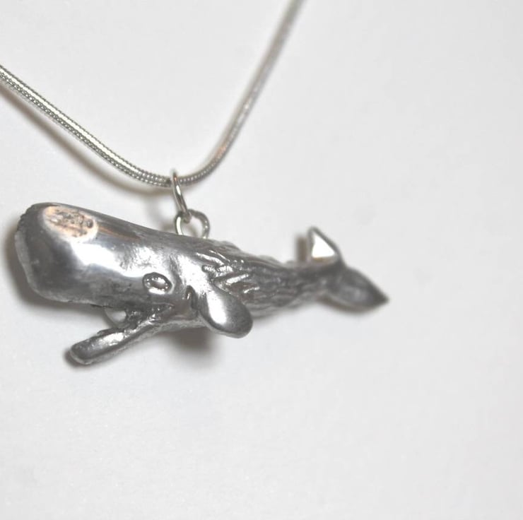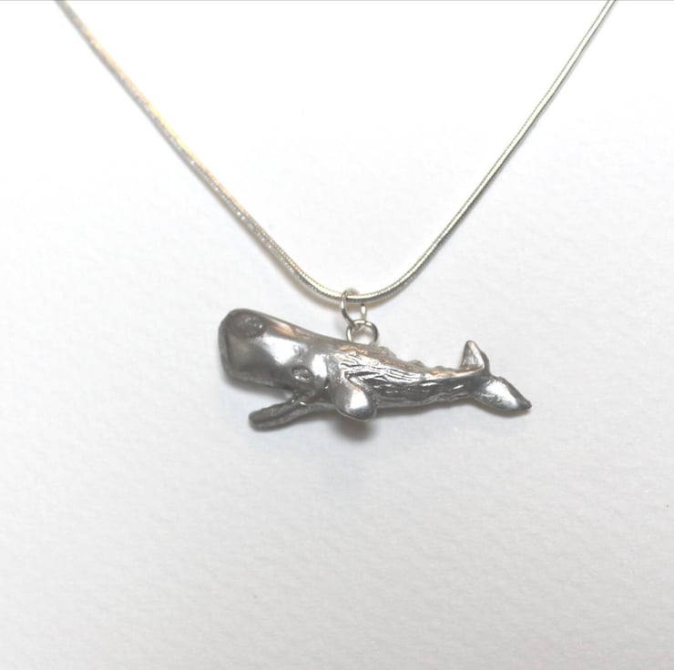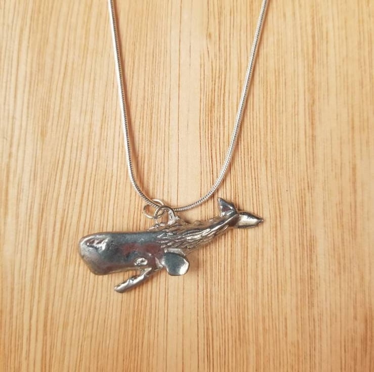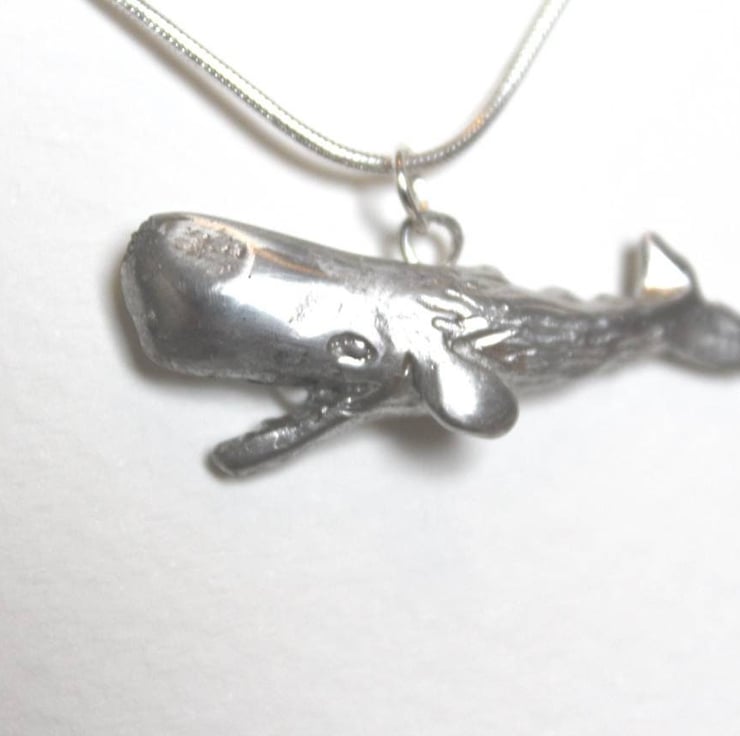 Handmade pewter sperm whale necklace. This charming little whale was hand-cast using high quality pewter, carved and then polished.