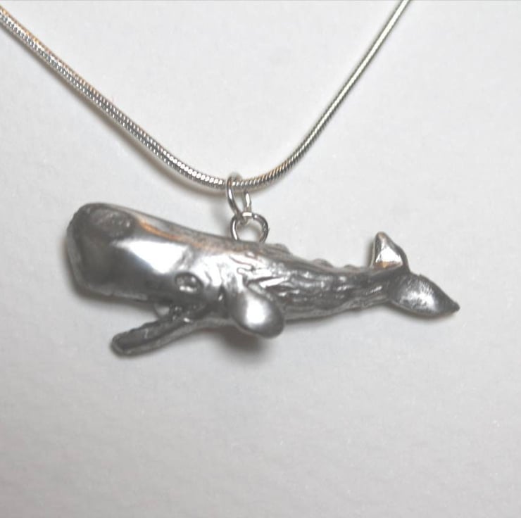 Handmade Recycled Pewter Sperm Whale Necklace, 18" Snake Chain, Ocean Sulpture P