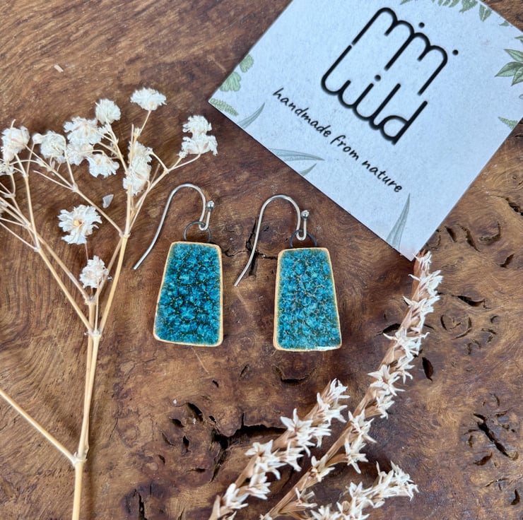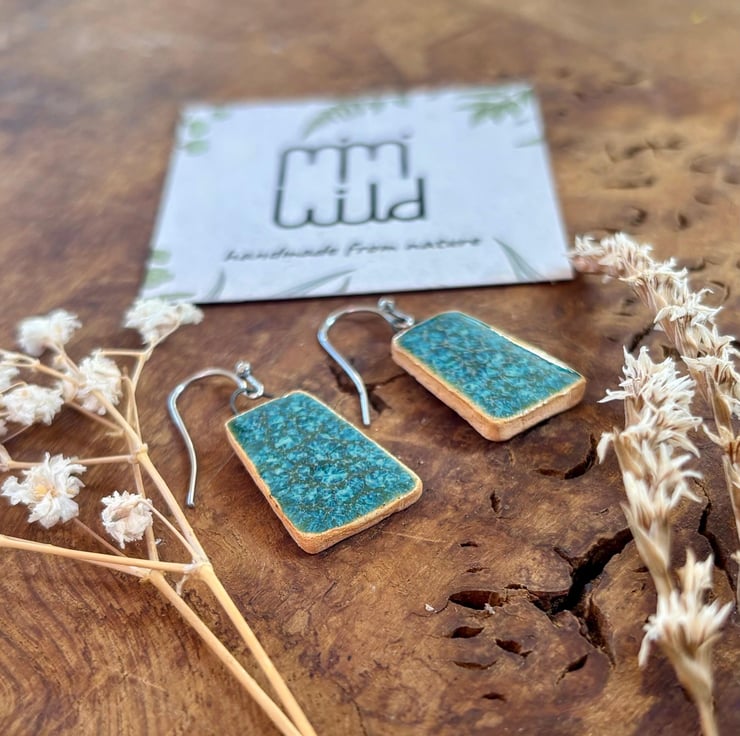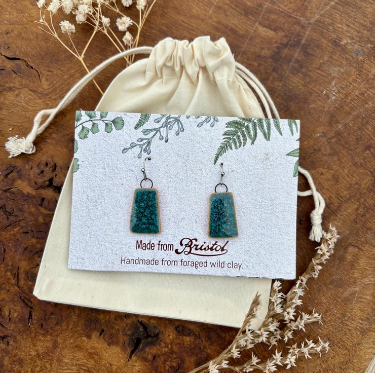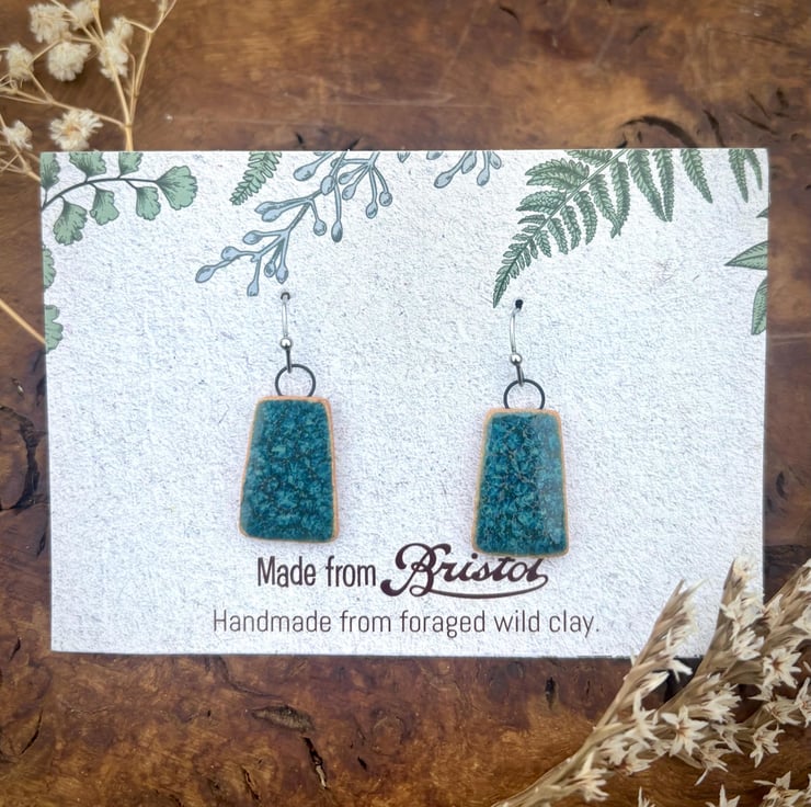 I handmade these turquoise boho dangle earrings from clay that I forage myself from around Bristol City Uk.
