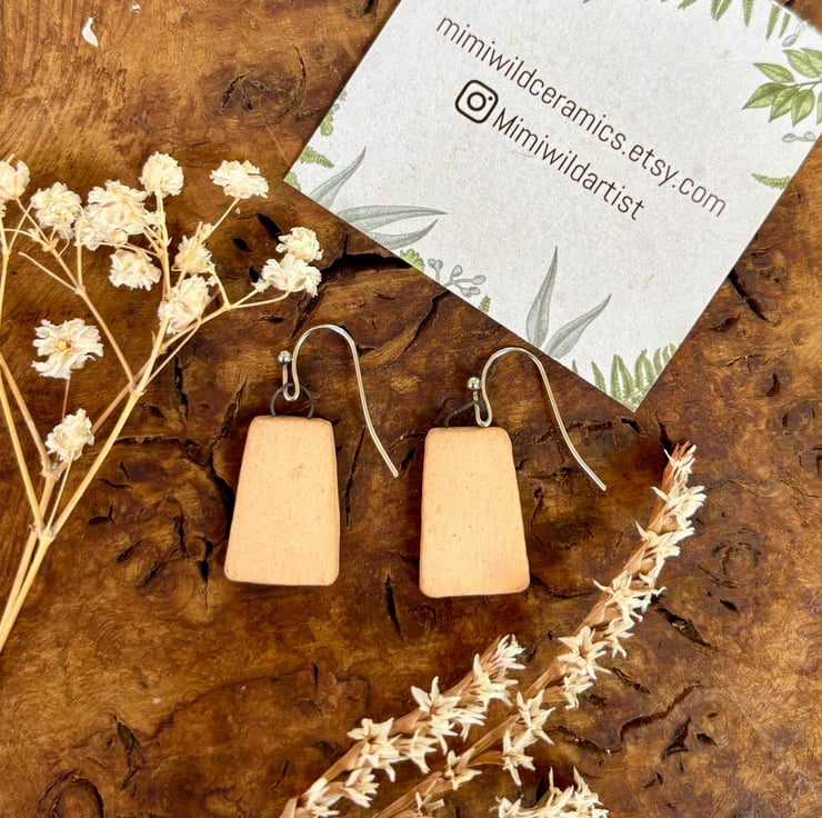 All my ceramic jewellery is handmade from clay that I dig and process myself. Once wedged and rolled I form the designs before bisque firing to 950 C in my little wooden cabin studio on the outskirts of Bristol Uk.