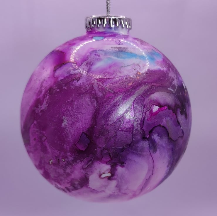 Acrylic, light weight bauble, 10cm diameter, hand painted with alcohol inks