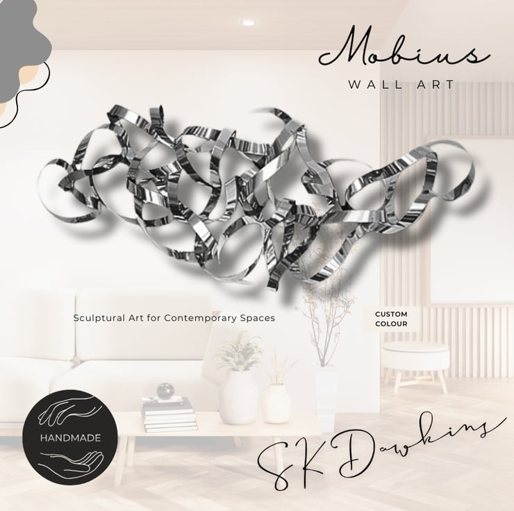 Featuring gracefully flowing metal ribbons that interweave and twist in a continuous loop, this stunning piece creates a captivating focal point that brings depth, movement and luxury to your home.