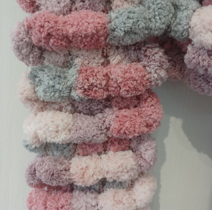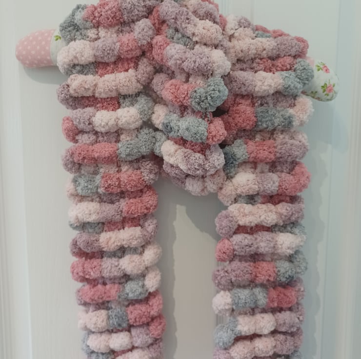 A multicoloured furry scarf that looks like knitted cheesy wotsits! The colours in this scarf are light grey, rose pink, light pink and mauve. These scarves are beautifully soft, thick, and really long. They will easily wrap around twice at 1m 70 by 12cm wide. There are a variety of colours available to suit any coat colour or personality. These scarves will make an excellent gift or just a lovely addition to your winter wardrobe!