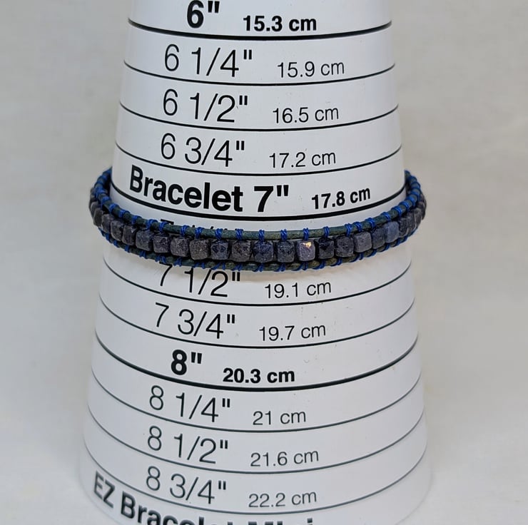 This bracelet measures just under 8 inches in length. It will arrive in a branded linen bag, ready for gifting or keeping. I use letterbox friendly sturdy cardboard boxes for posting.