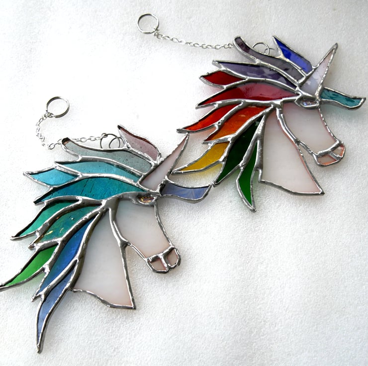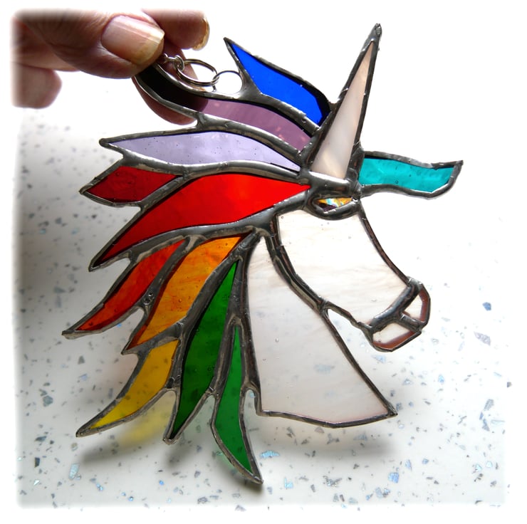 Unicorn Suncatcher Stained Glass Handmade 053 Rainbow