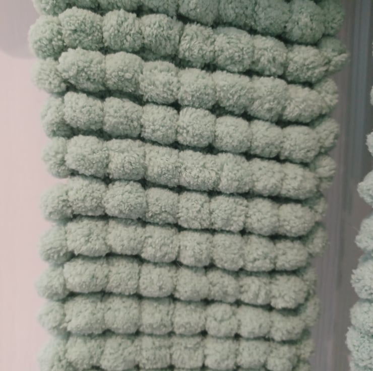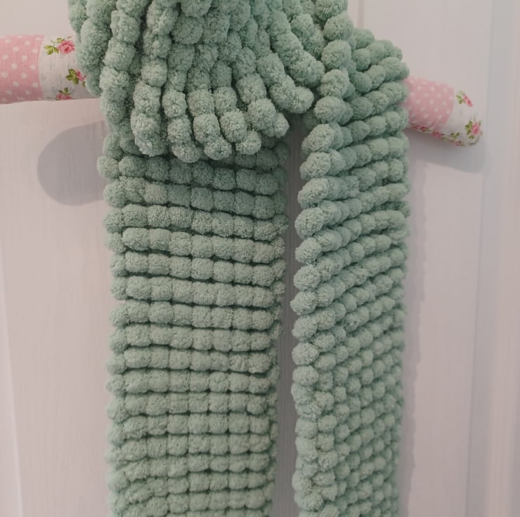 A light green furry scarf that looks like knitted cheesy wotsits! These scarves are beautifully soft, thick, and really long. They will easily wrap around twice at 1m 65 by 15cm wide. There are a variety of colours available to suit any coat colour or personality. These scarves will make an excellent gift or just a lovely addition to your winter wardrobe!